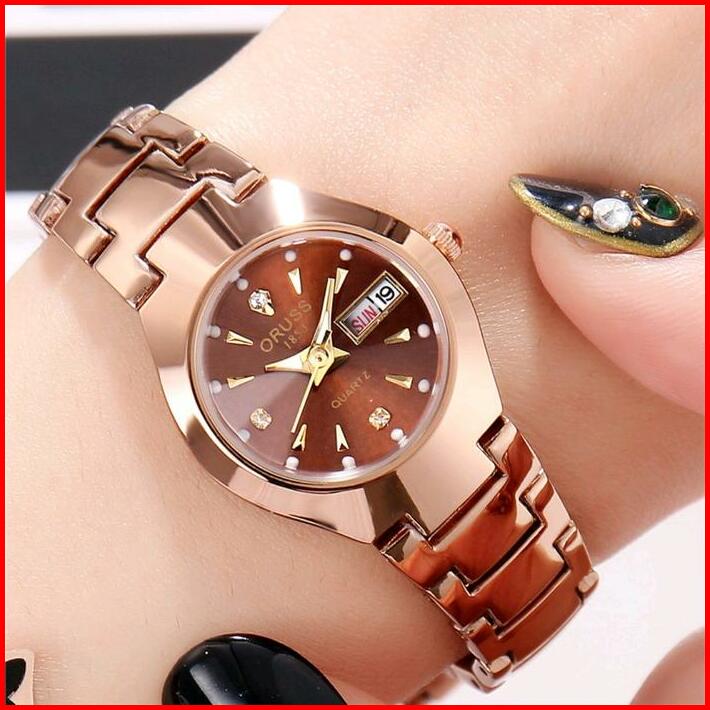 Jam Tangan Wanita Kecil Rantai Oruss Original Tahan Air Analog Dual Kalender Bisnis Cewe