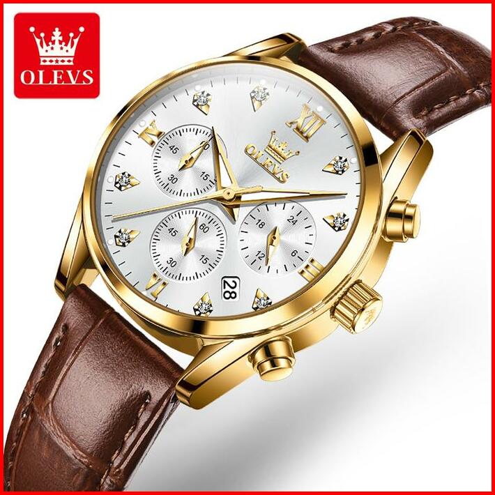 Olevs Jam Tangan Wanita Anti Air Anak Perempuan Kecil Original Kulit Korea Casual Putih Chrono Aktif Watch Women Hadiah