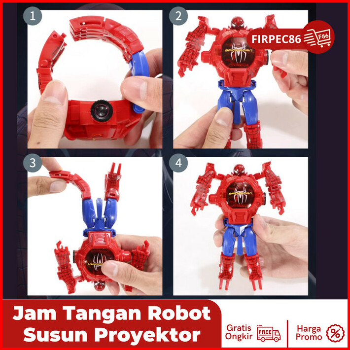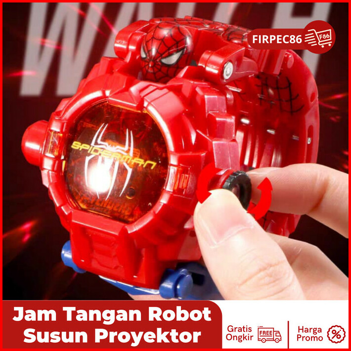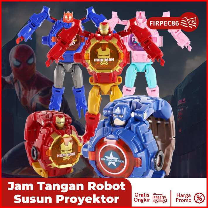 Jam Tangan Anak Proyektor Led Laser Avenger Transform Robot Lengkap