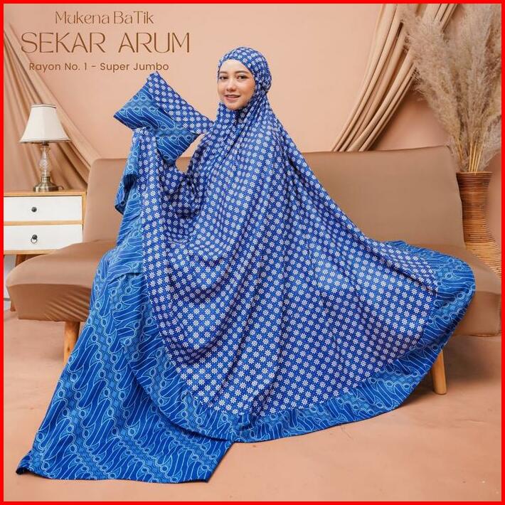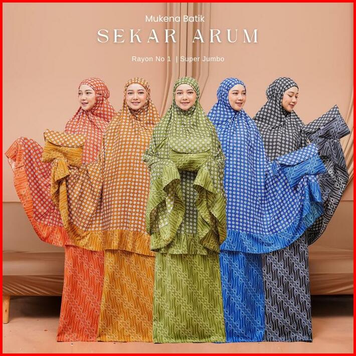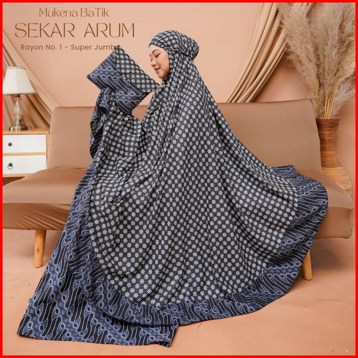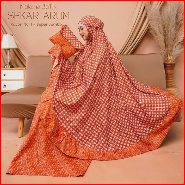 Mukena Batik Dewasa Rayon Bali Premium Sekar Arum Super Jumbo Atasan Bawahan Katun Panjang