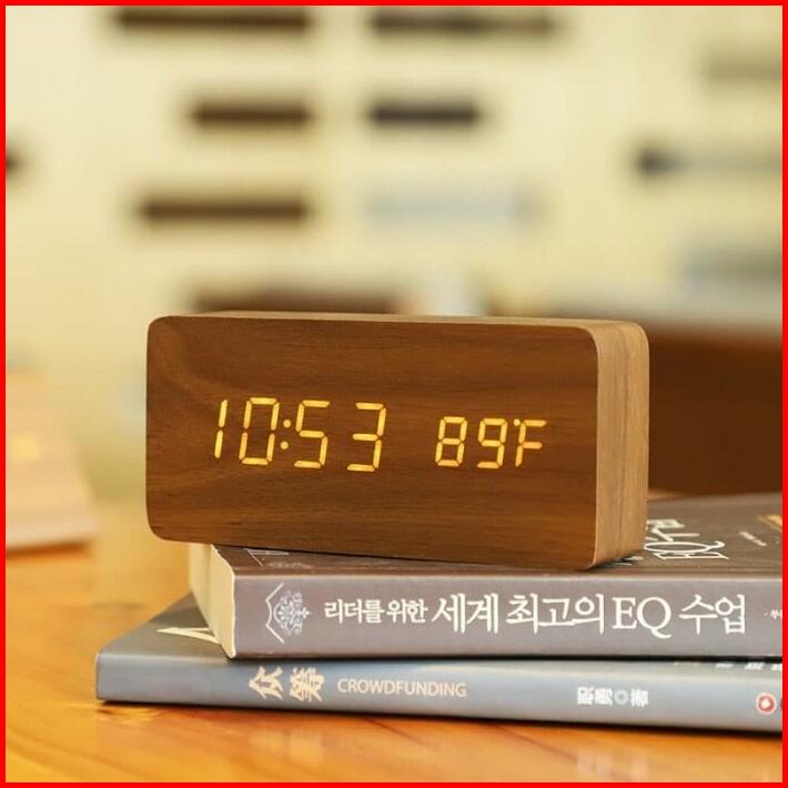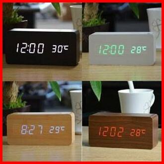 Jam Meja Kayu Digital Led Jam Estetik Suhu Digital Wood Smart Alarm Clock Estetik Jam Weker