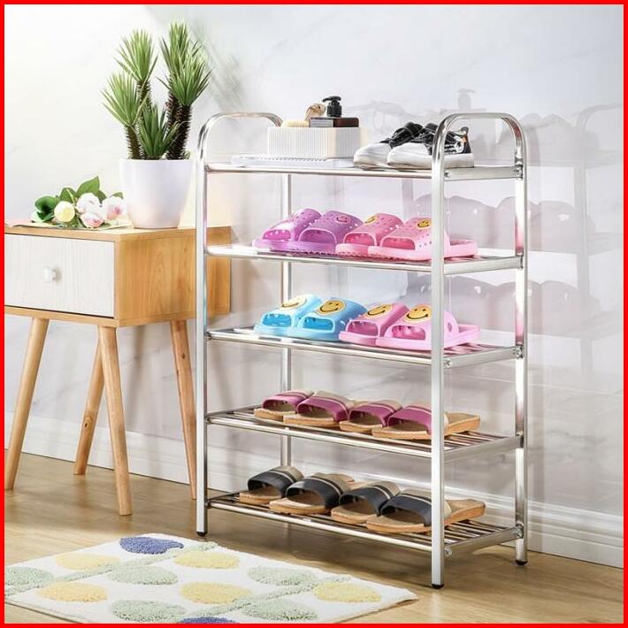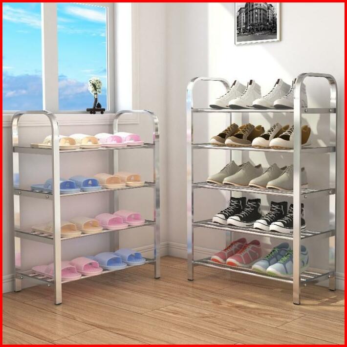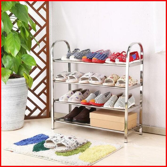 Rak Sepatu Susun Stainless Steel Tempat Sandal Alas Kaki Rak Susun Bahan Kuat Multifungsi Portable