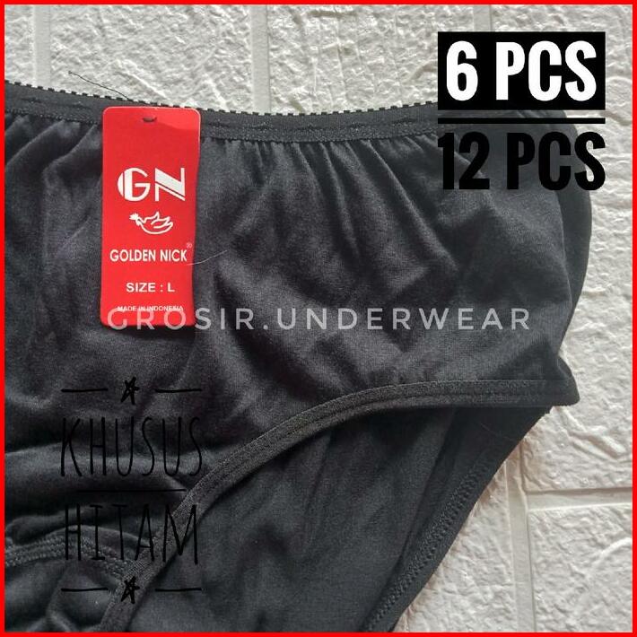 Spesial Warna Hitam 6 Dan 12 Pcs Celana Dalam Golden Nick Hitam Polos