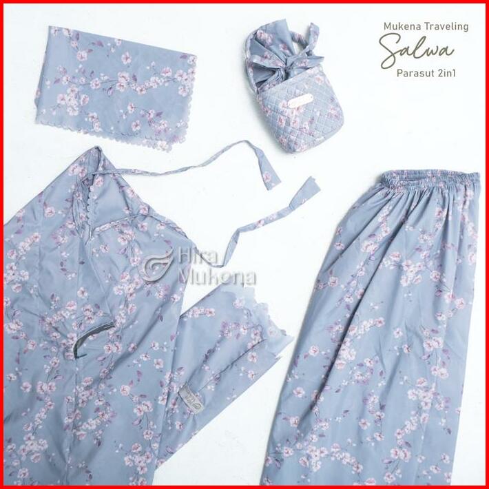 Mukena Travel Dewasa 2in1 Salwa Size Jumbo Series Traveling Parasut Korea Mini Pouch Free Sajadah Hira Mukena