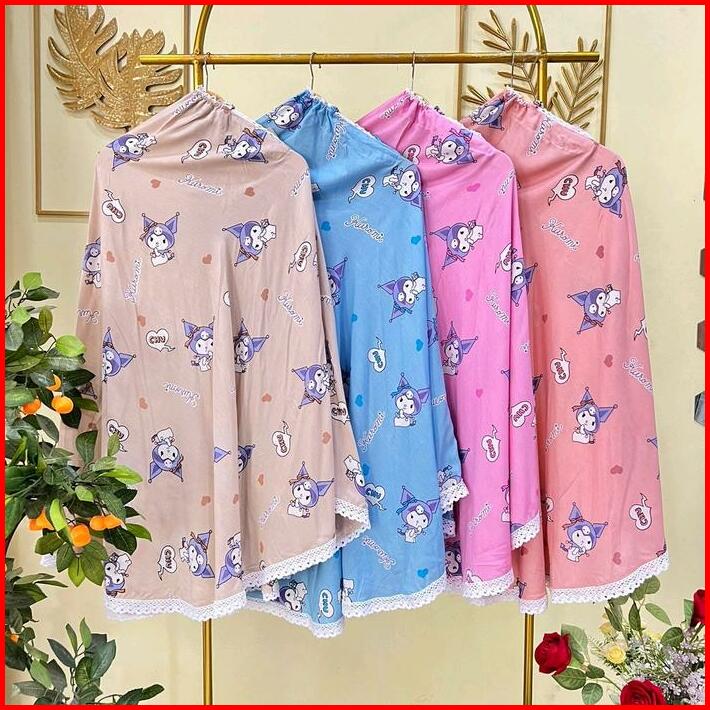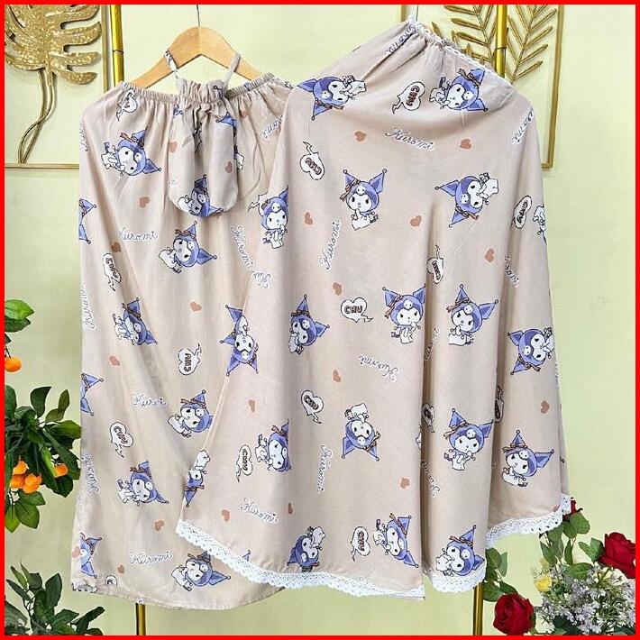 Afd Mukena Daily Rayon Motif Kuromi Anak 2024 4-8 Tahun Renda Kerut Kening Free Pouch Cantik