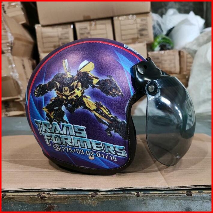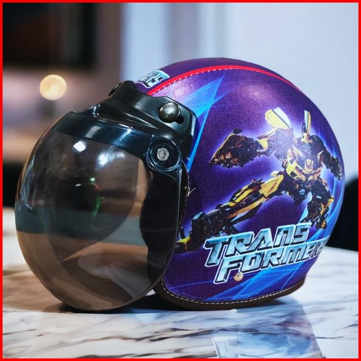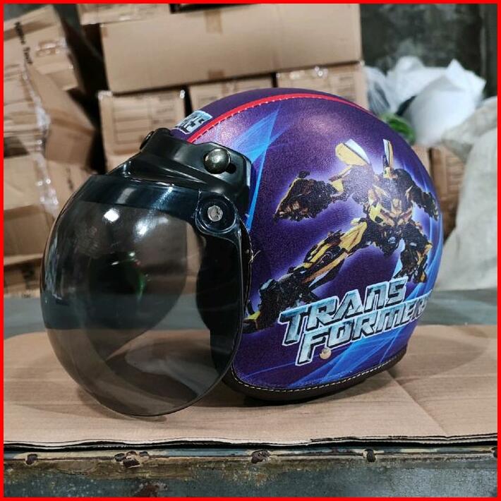 Helm Bogo Anak Retro Karakter Transformers Sni Untuk Usia 2-6 Tahun Laki Laki Perempuan Helmet Motorcycle Kaca Cembung