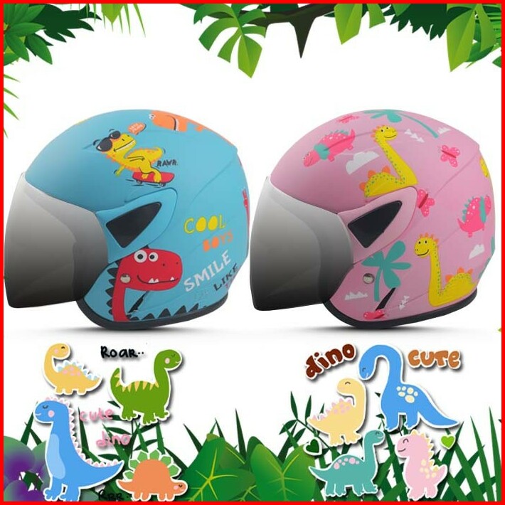 Helm Anak Karakter Kartun Motif Lucu Dino Sni- Laki Laki Perempuan