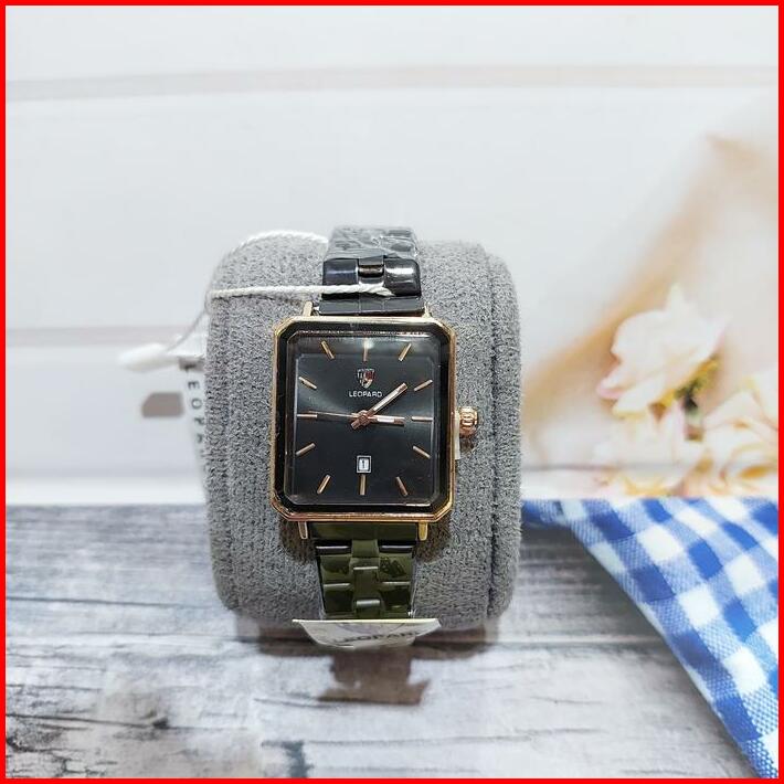 Lengkap Box Jam Tangan Wanita Leopard 8078 Original Tanggal Aktif Stainless Steel Watches
