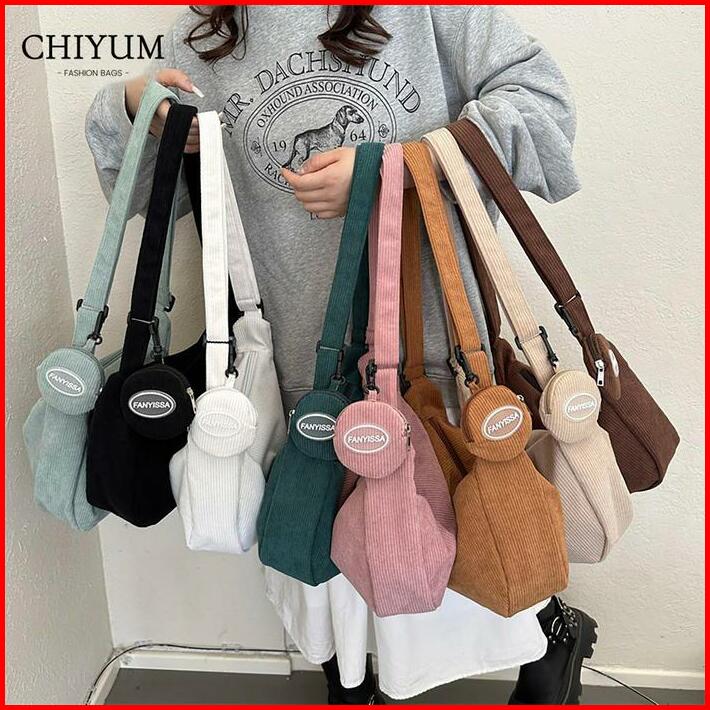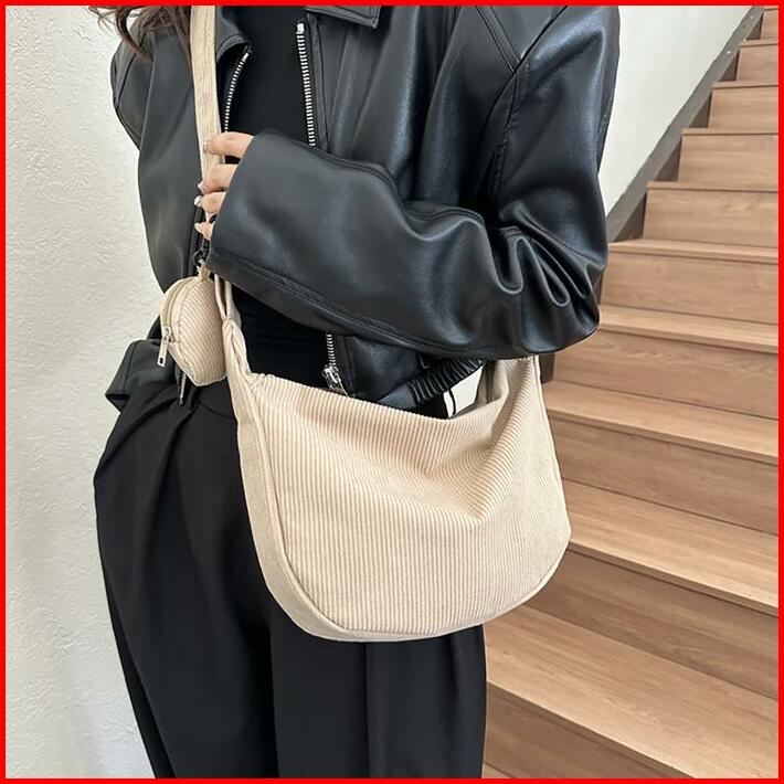 Ready Tas Pangsit Tas Selempang Wanita 2-in-1 Corduroy Dumpling Bag Tas Mahasiswa Casual Sling Bag Mode Komuter Bag Kapa