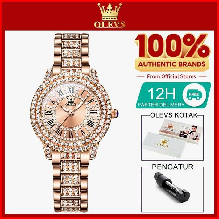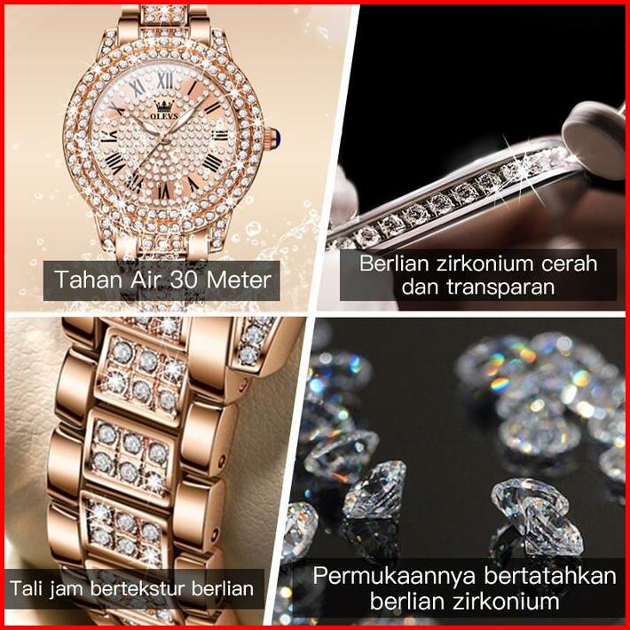Olevs Jam Tangan Wanita Original Anti Air Elegan Tahan Korean Fashion Diamond Face Modern High Quality Watches For Women