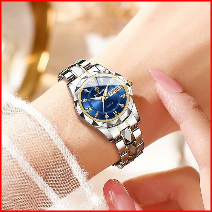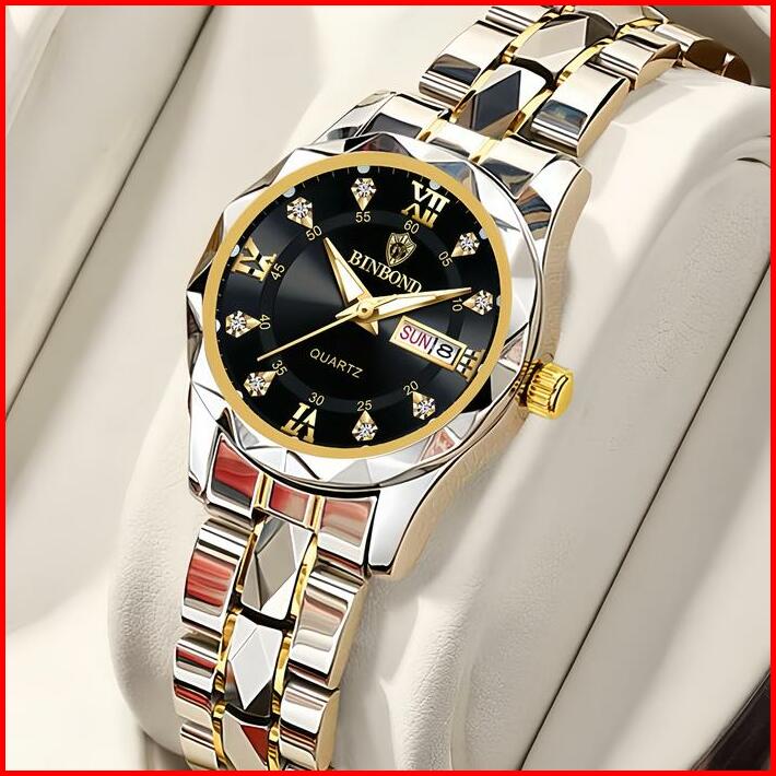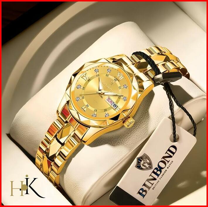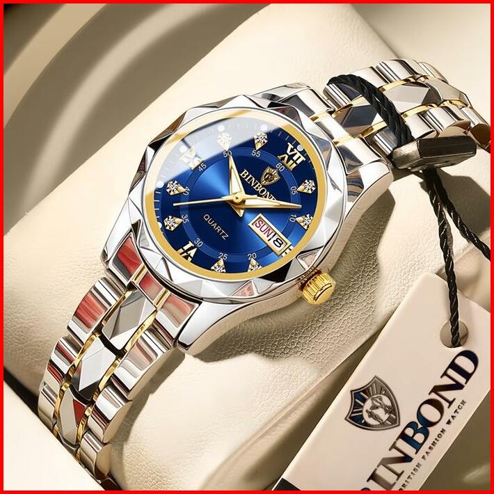 Koleksi Baru Jam Tangan Wanita Anti Air Original Binbond Cewek Kalender Bercahaya Analog Luminous Stainless Steel Women