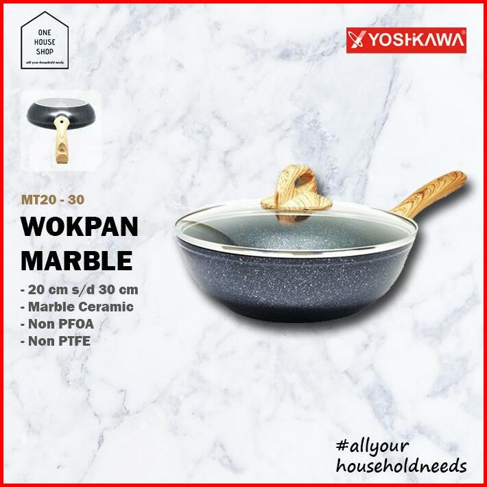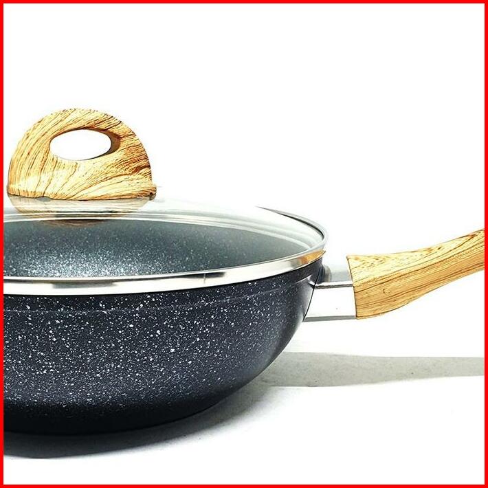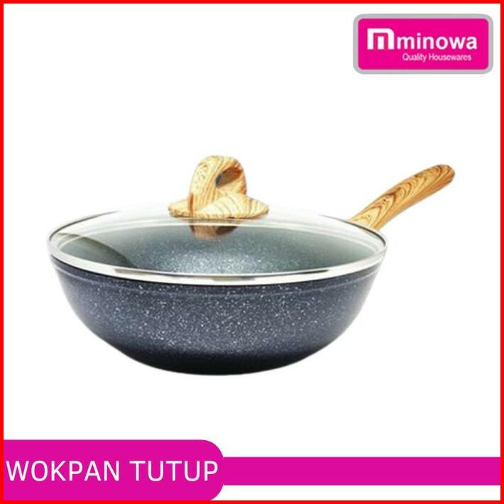 Wajan Wok Pan Anti Lengket Marble Ceramic Wok Tutup Kaca Minowa Dynasty Series