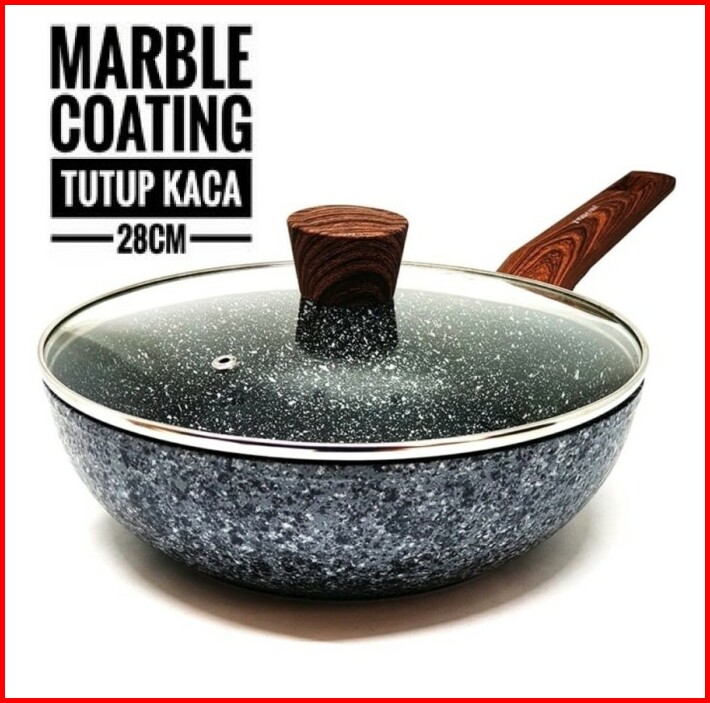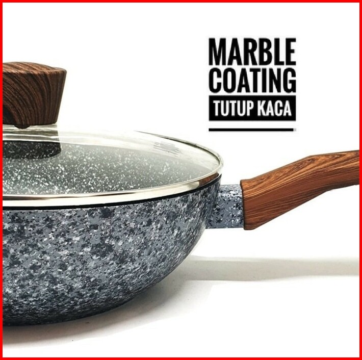 Wajan Wok Pan Marbel Anti Lengket Yoshikawa Marble Ceramic Pan Wok