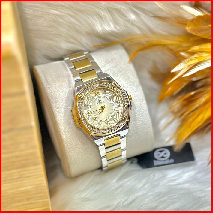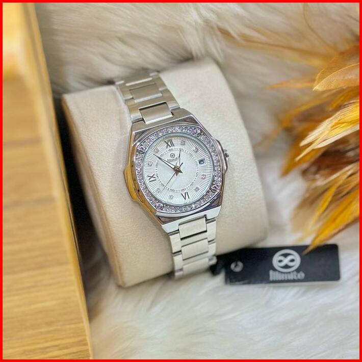 Jam Tangan Wanita Illimite 8648 Rantai Stainless Steel Analog Tanggal Aktif Dilengkapi Box Watches