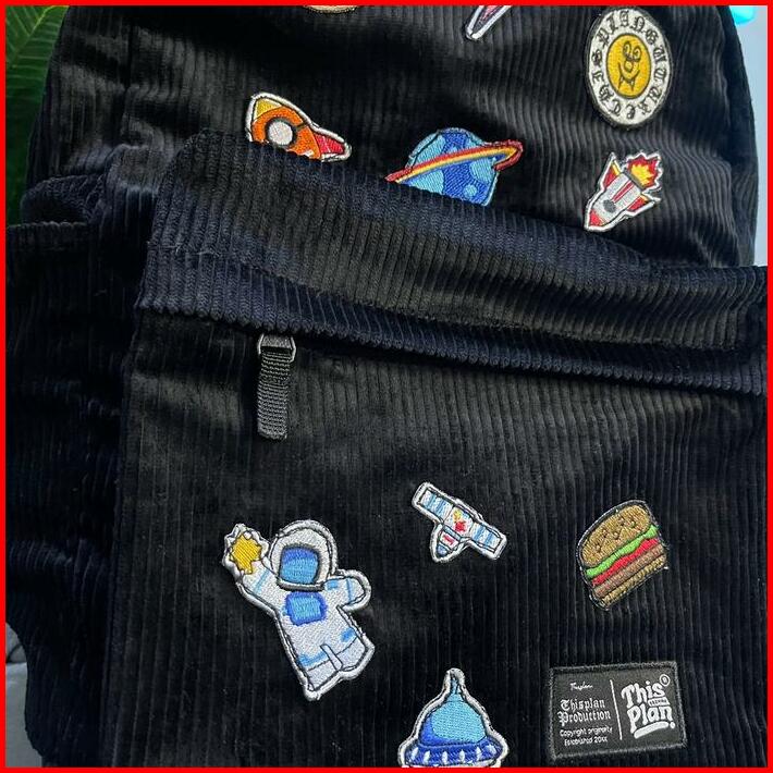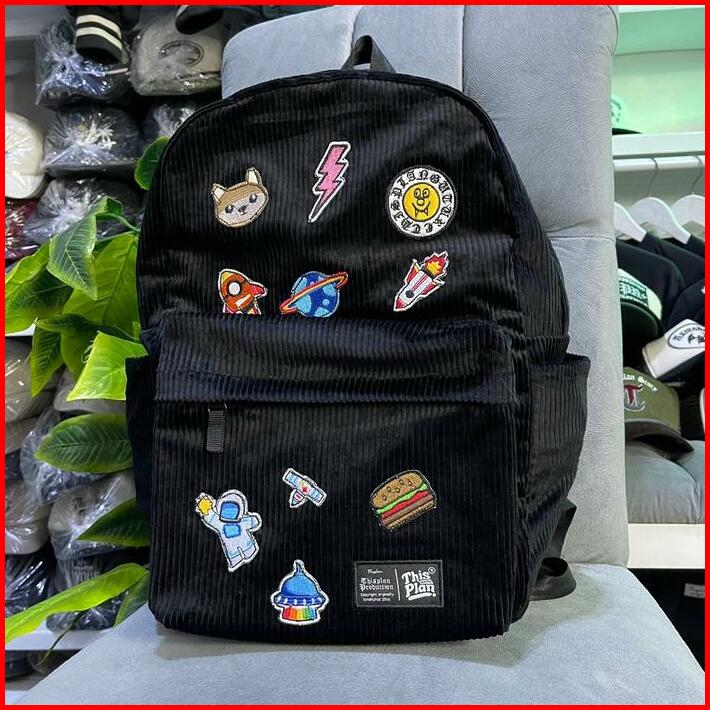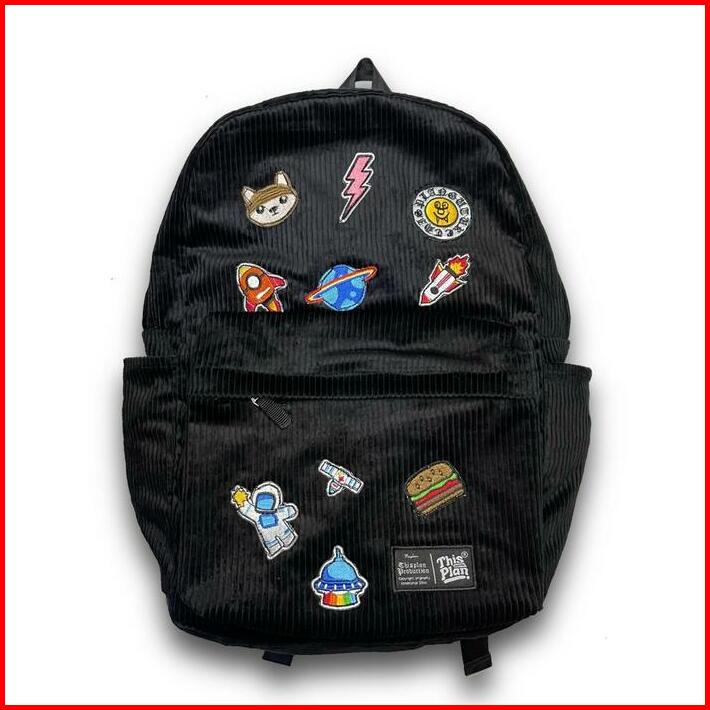 Backpack Ransel Tas Corduroy Black Full Pacth Thisplan
