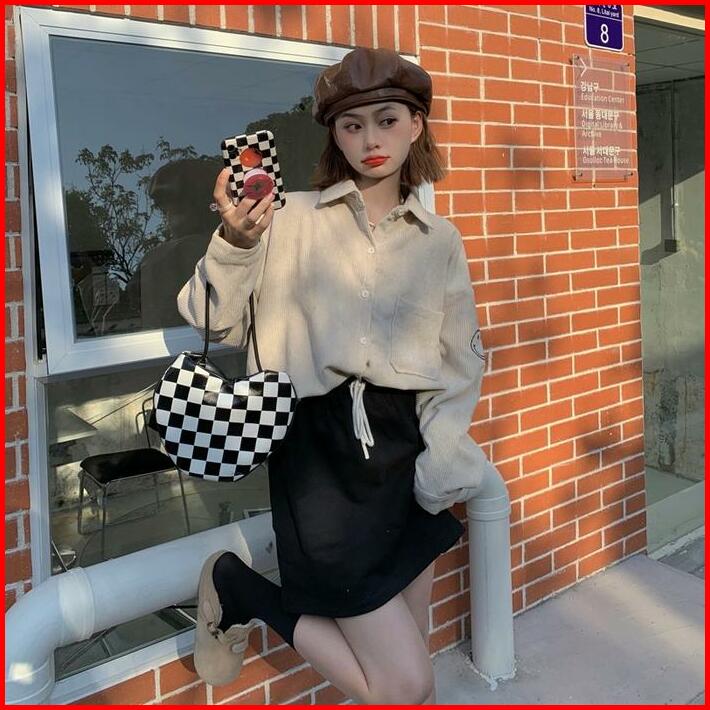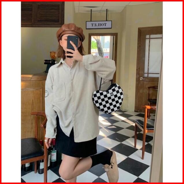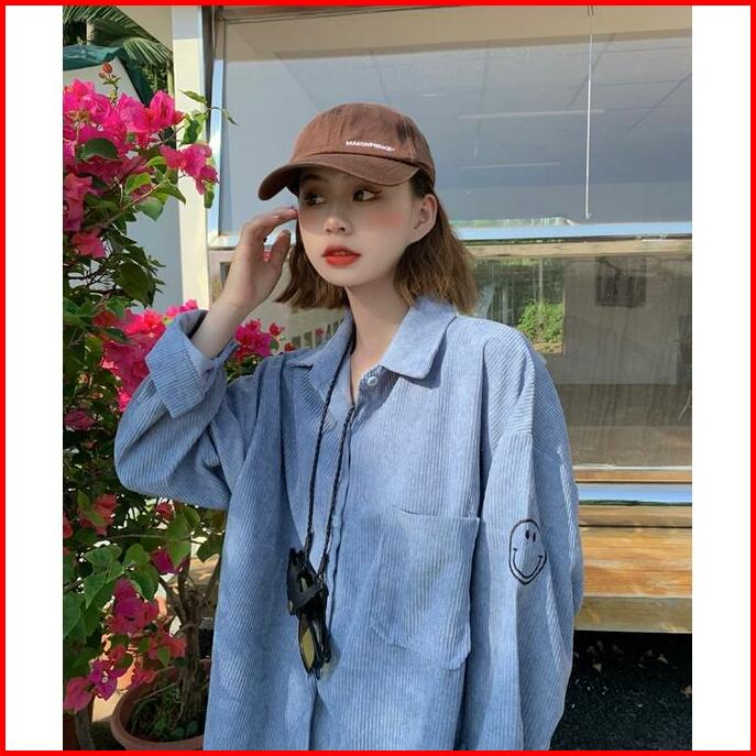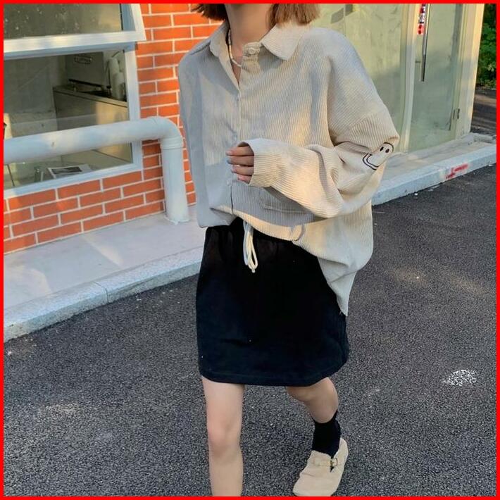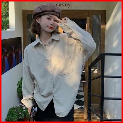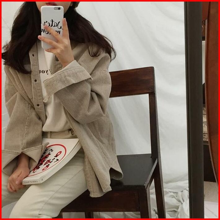 Corduroy Shirt Kemeja Lengan Panjang Wanita Korean Style Baju Atasan Wanita Jaket Korduroi Pendek Retro Wanita Warna Sol