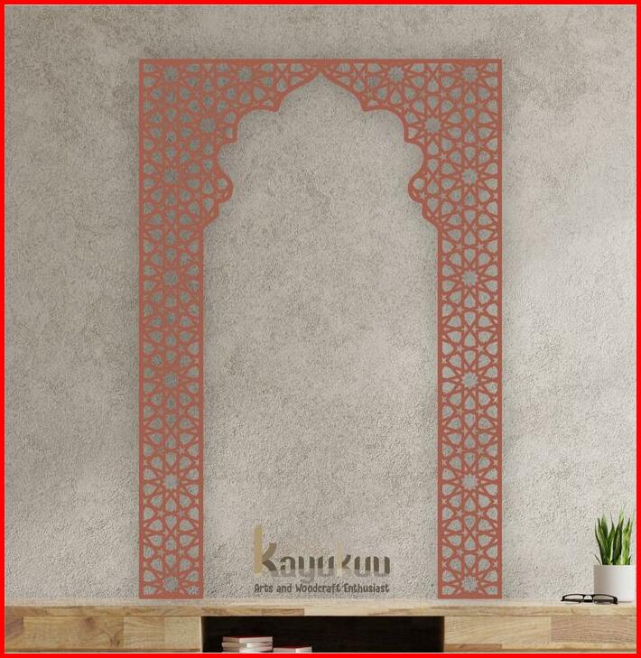 Walldecor Hiasan Dinding Mihrab Mushola Bahan Cutting Plywood 3mm Wall Silver Hanging Decor