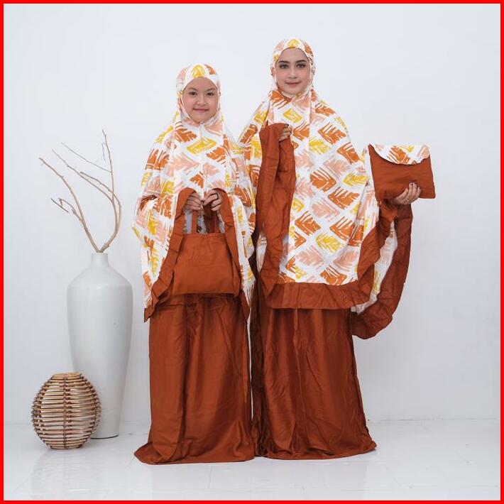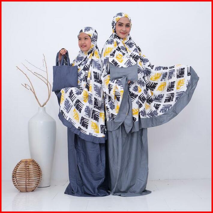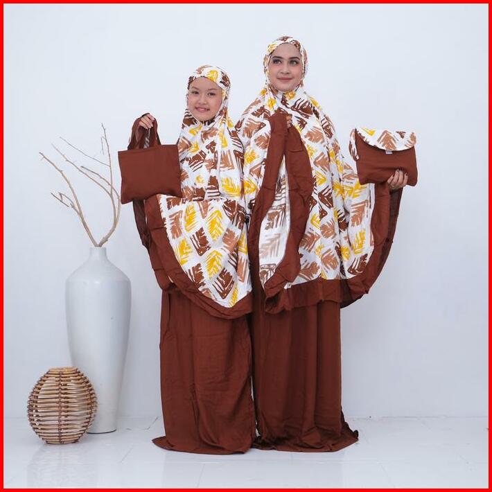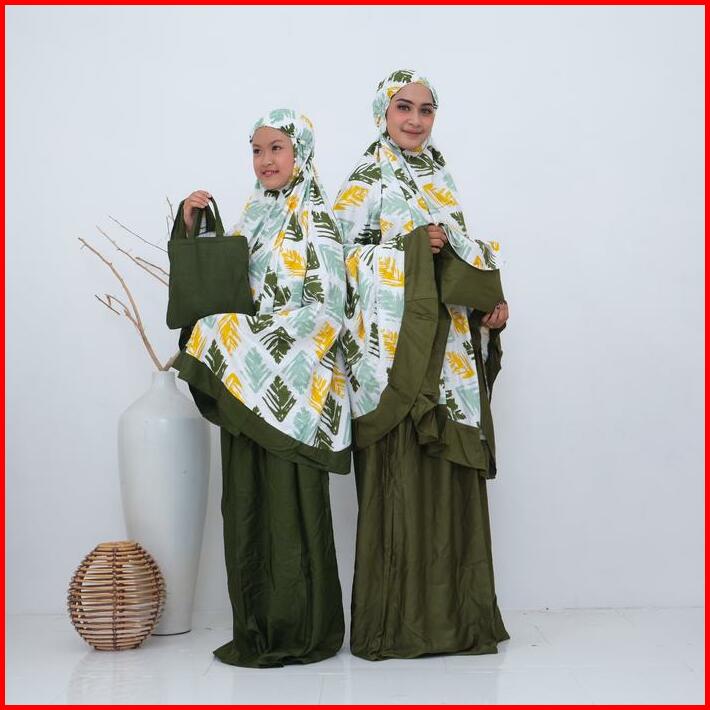 Mukena Rayon Bali Cople Motif Tropical Original Kople Atasan Cantik Dewasa Nyaman Serut Panjang Muslim Traveling Bawahan
