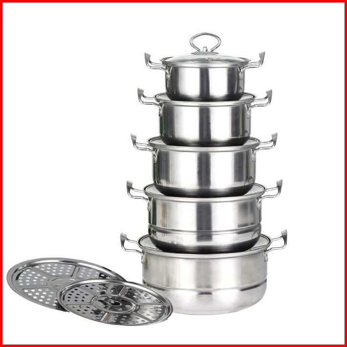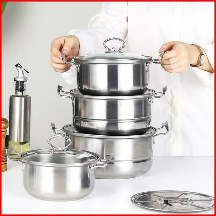 Panci 1 Set 5pcs Dengan Kukusan Stainless Steel Panci Steamer Kukus Dandang Sup Mie Soup Milk Pot Cookware