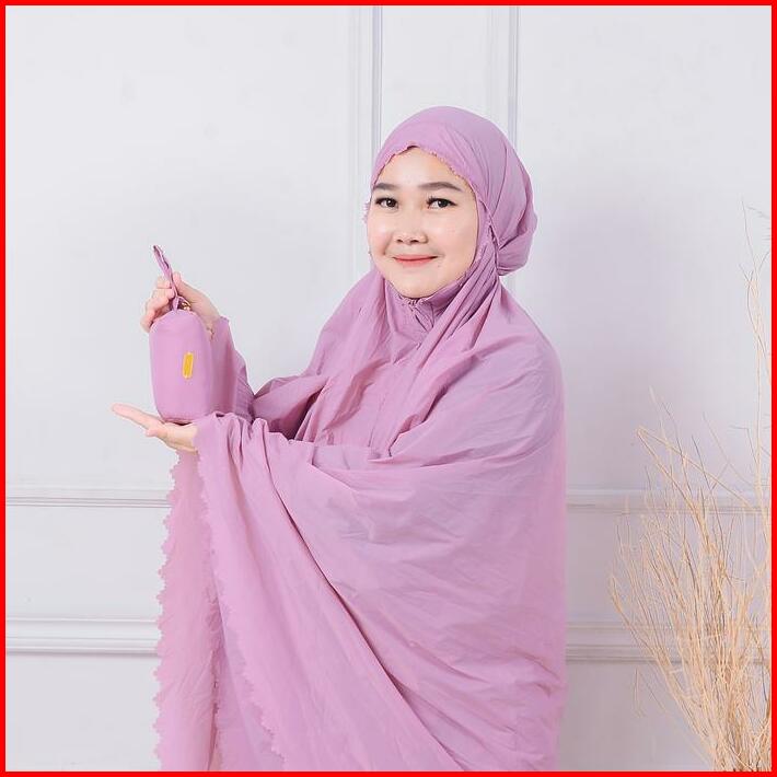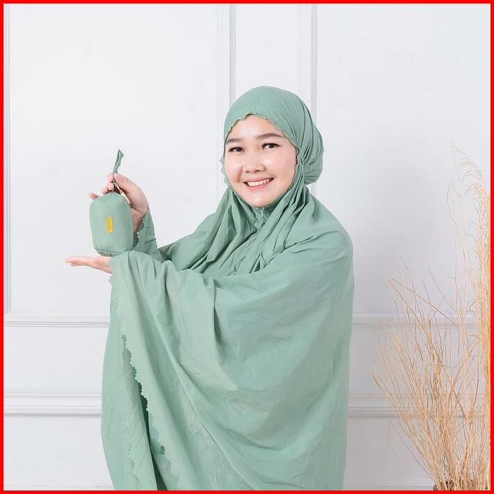 Mukena Dewasa Parasut Polos Traveling Korea Premium 2in1 Laser Cut Atasan Bawahan Mini Pouch Murah Free Sejadah Muka Bah