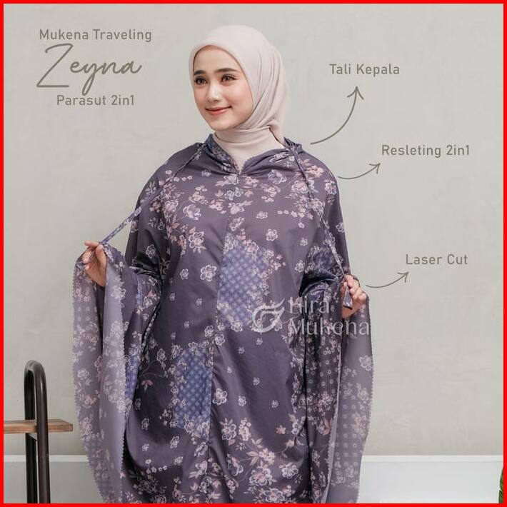Hira Mukena Zeyna Travel Dewasa 2in1 Seriestraveling Parasut Korea Mini Pouch Free Sajadah