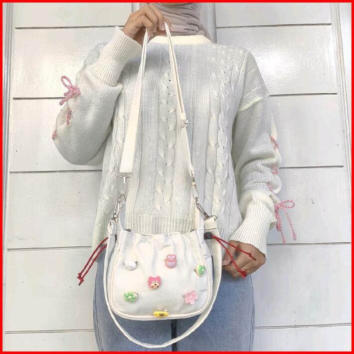 Villya Slingbag Shoulder Bag Tas Mini Serut Tas Kanvas Canvas Tas Bahu Tas Selempang Wanita