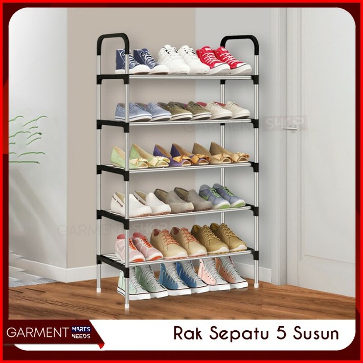 Rak Sepatu Sandal 5 Susun Portable Layer Holder Payung Besi Plastik