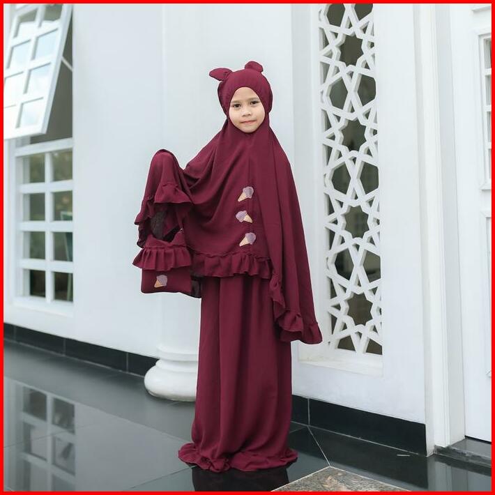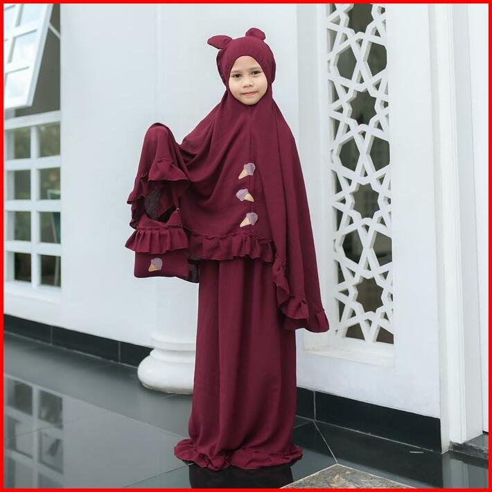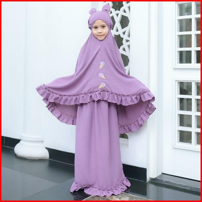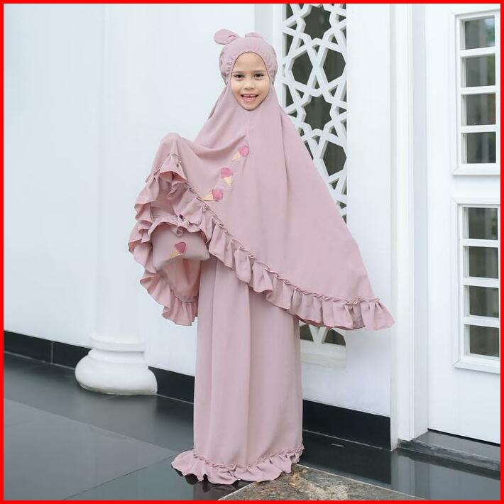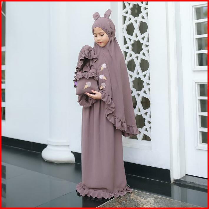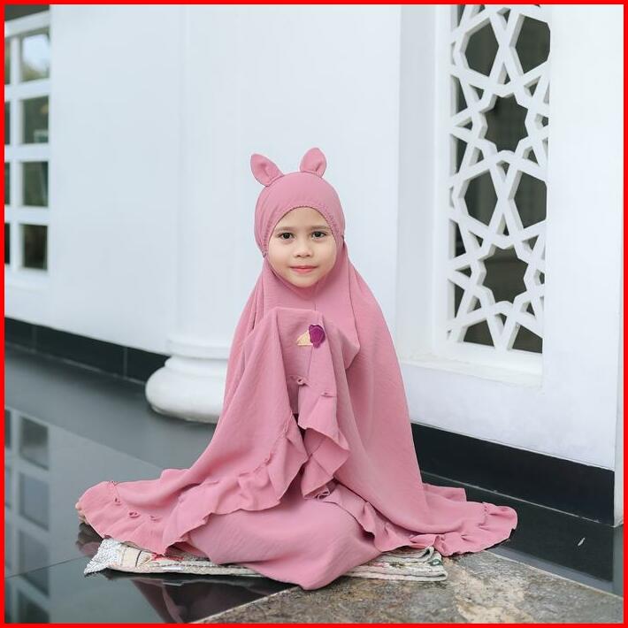 Dera Kids Kiki Mukena Bahan Crinkle Airflow Umur Usia 1 2 3 4 5 6 Tahun Anak Perempuan Muslim Rample Lucu