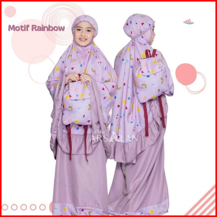 Mukena Rayon Anak Tanggung Tk Sd Tas Gendong Ransel Motif Rainbow Atasan Cantik
