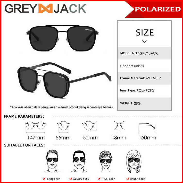 Grey Jack Kacamata Hitam Sunglasses Polarized Anti Uv Pria Wanita 2112