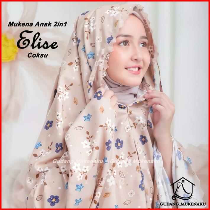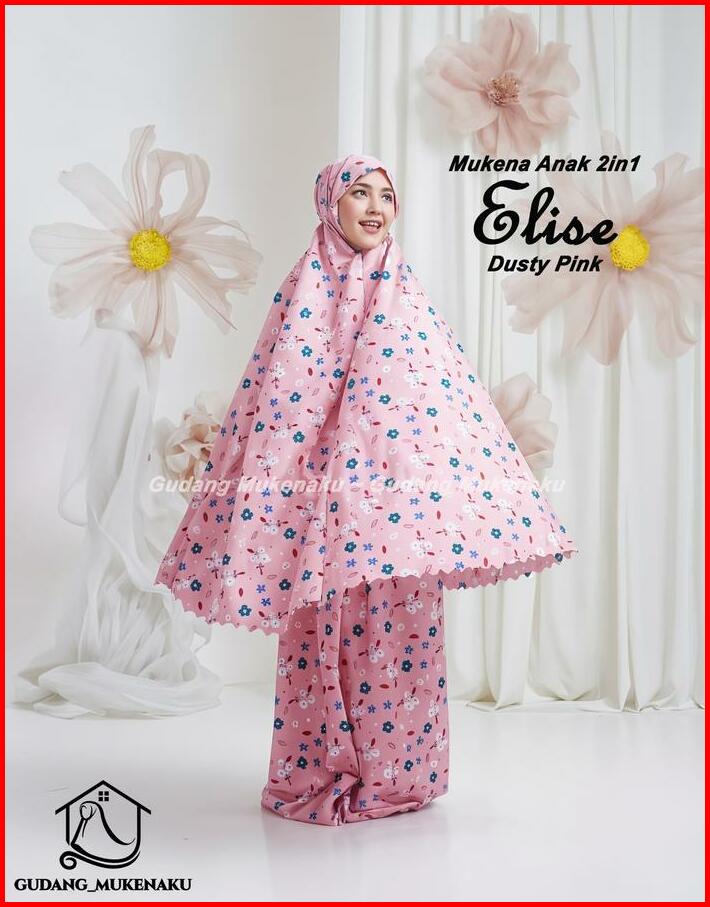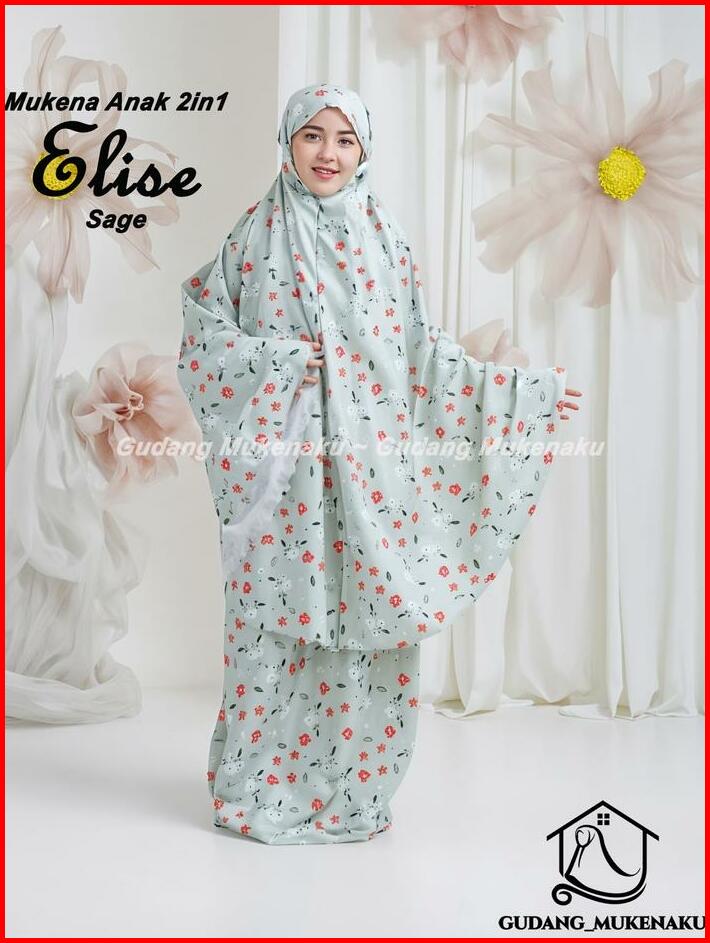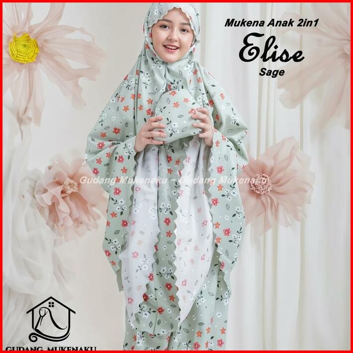 Mukena Anak Tanggung 2 In 1 Elise Full Bunga Bahan Katun Premium Free Tas