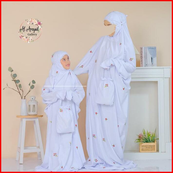 Mukena Buket Melati Khusus Putih Couple Ibu Anak Sd Remaja Dewasa Lembut