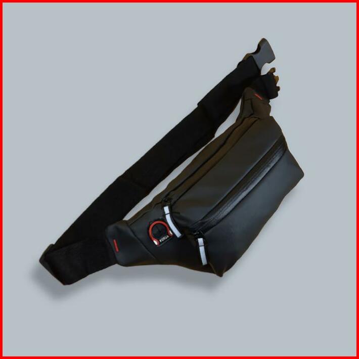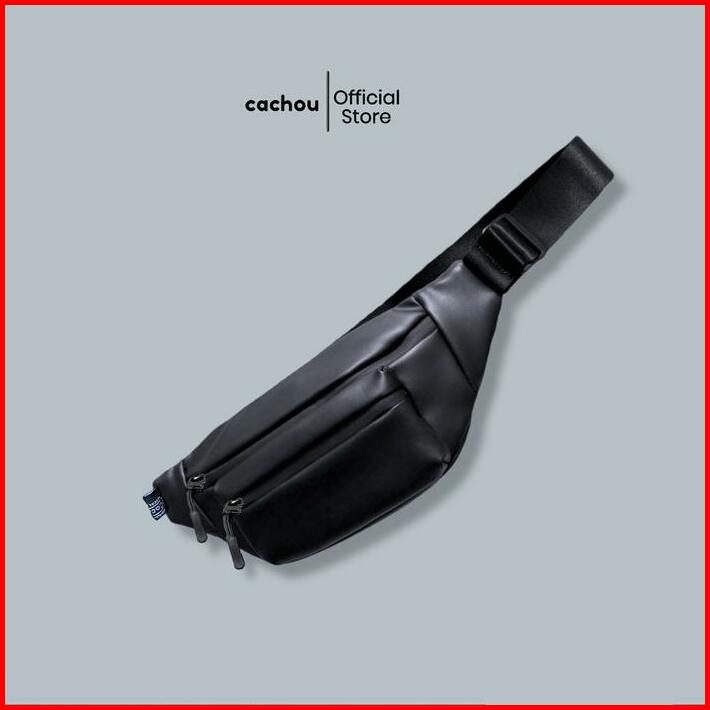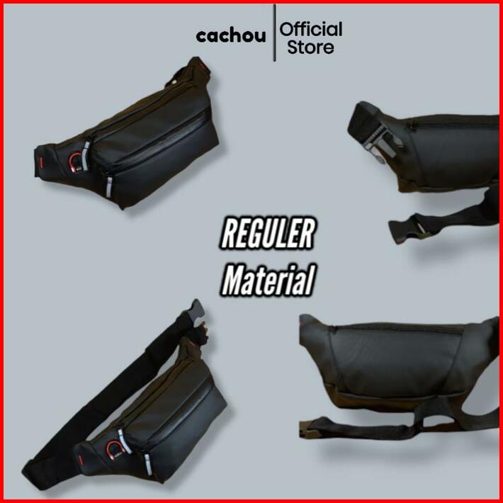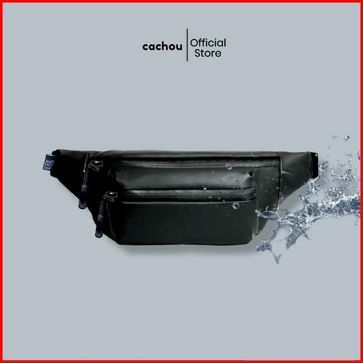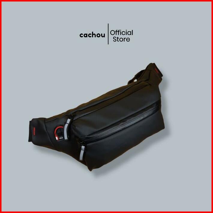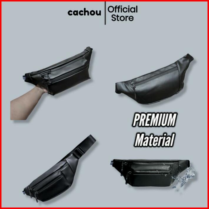 Cachou Tas Selempang Pria Anti Air Waterproof Waistbag Multifungsi Hitam Pinggang Slingbag Kulit Cowok
