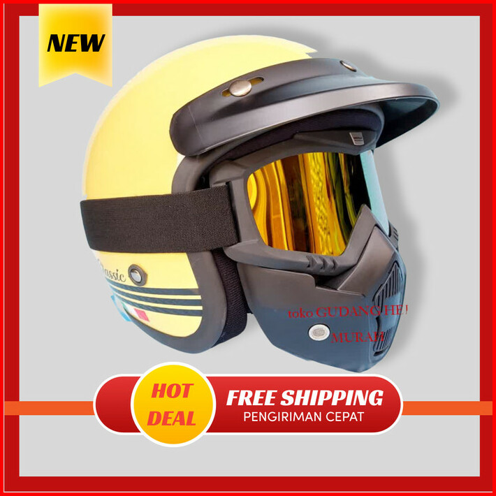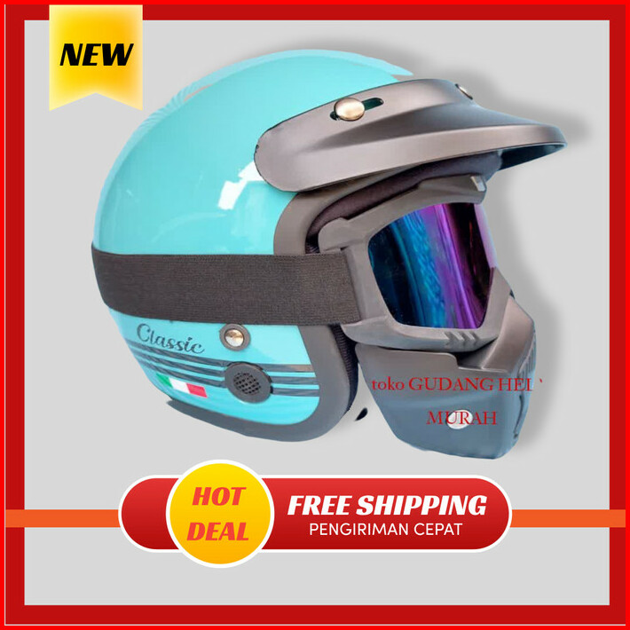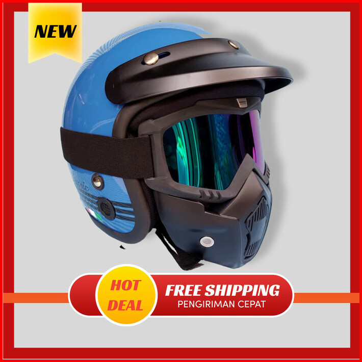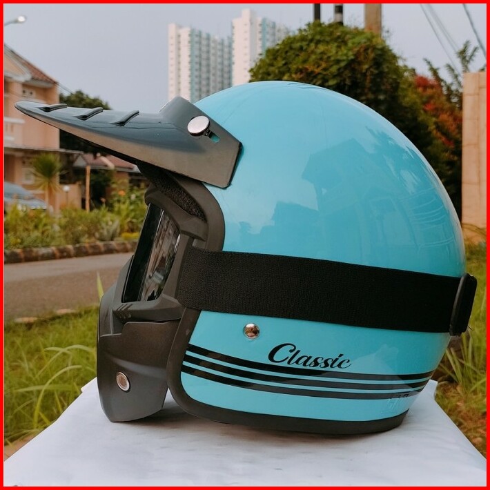 Helm Bogo Retro Classic New Dewasa Pet Panjang Google Mask Motor Sni