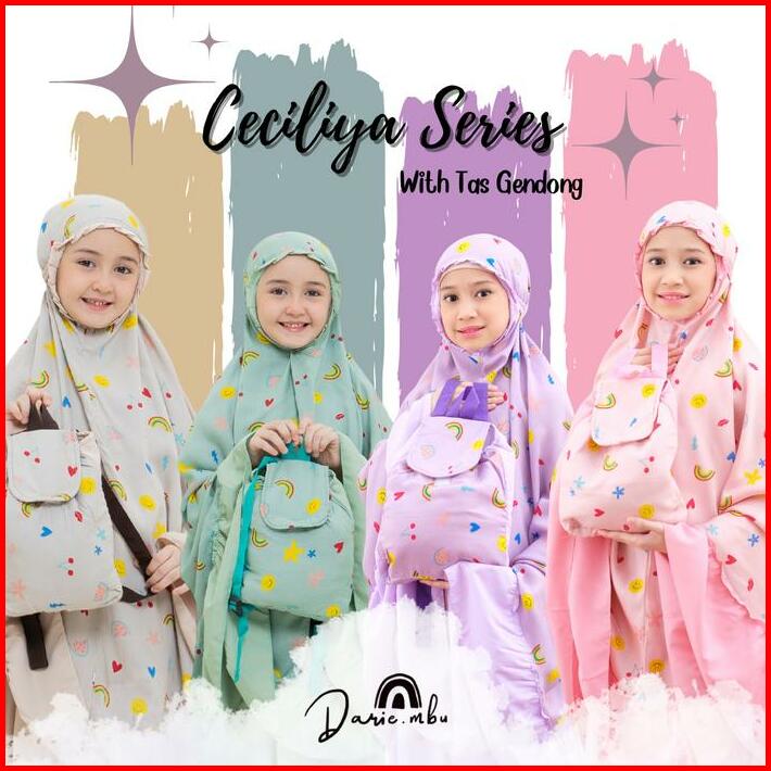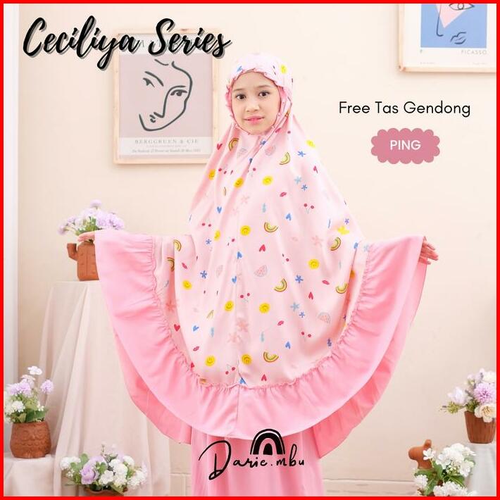 Mukena Anak Katun Rayon Dan Mikro Kombinasi Umur 2-12 Tahun Ceciliya Series Cantik Motif Panjang Muslim Nyaman Atasan Va