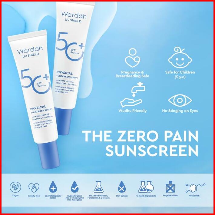 New Wardah Uv Shield Physical Sunscreen Serum Spf 50 Pa 30 Ml