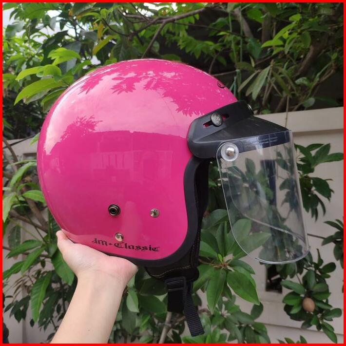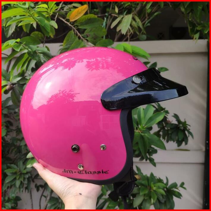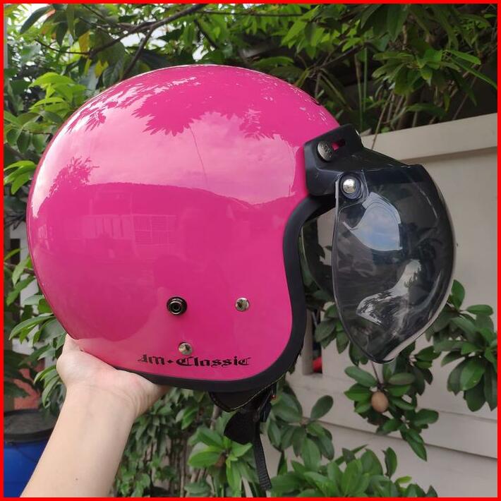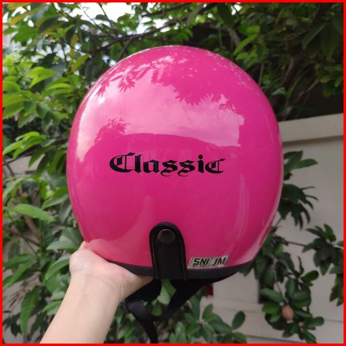 Helm Bogo Classic Retro Pink Magenta Glossy Sni Cembung Datar Motorcycle