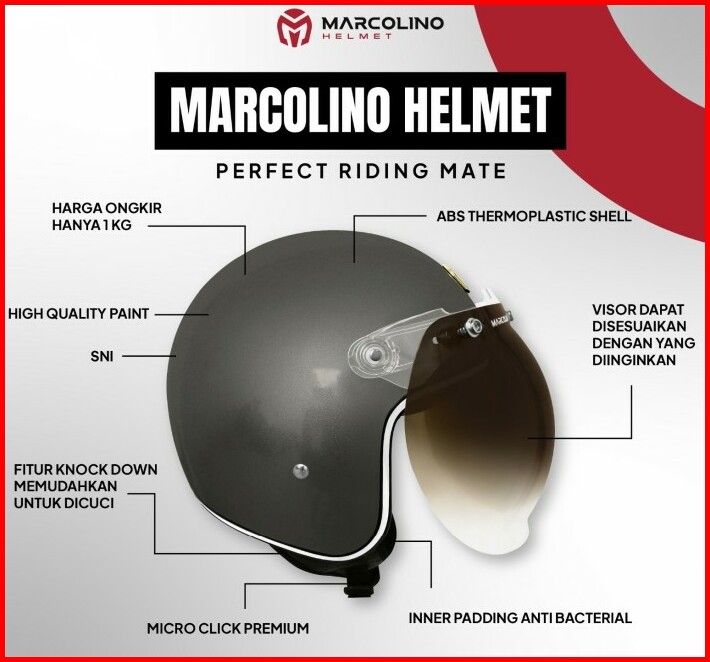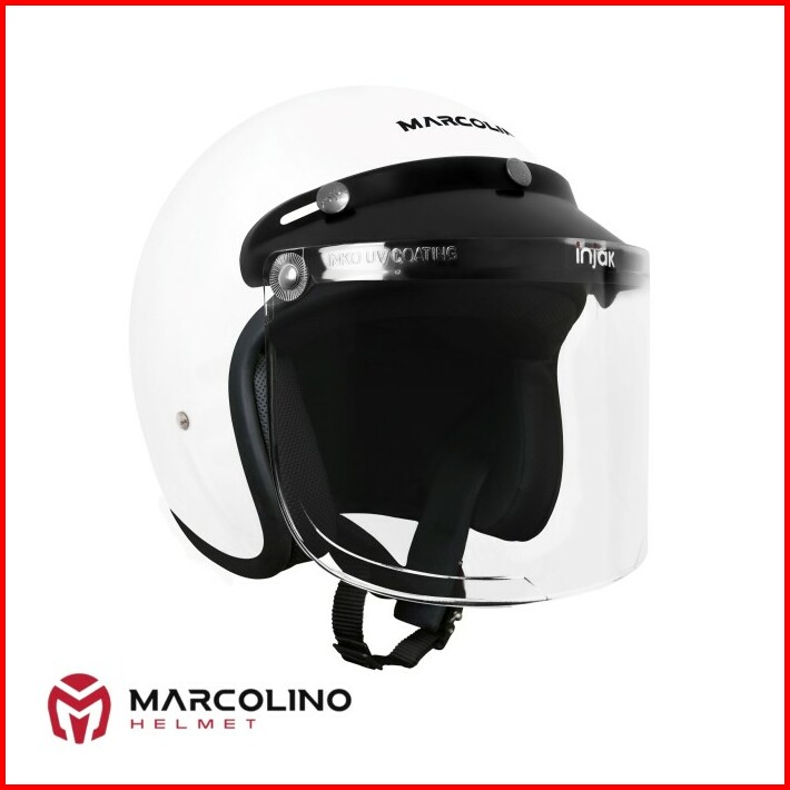 Helm Bogo Retro Marcolino Putih Glossy Sni Flat Visor