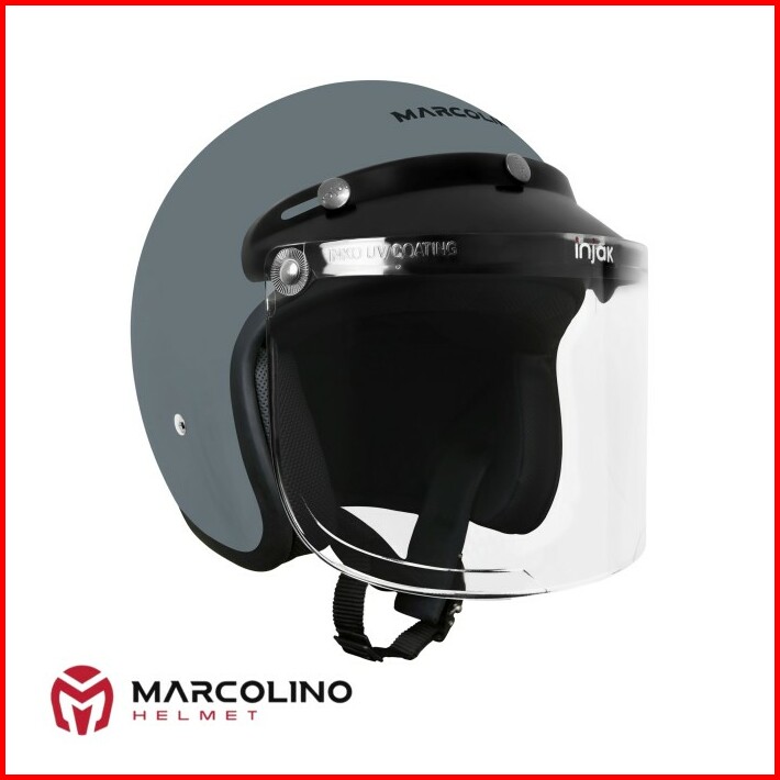 Helm Bogo Retro Marcolino Marine Grey Sni Flat Visor