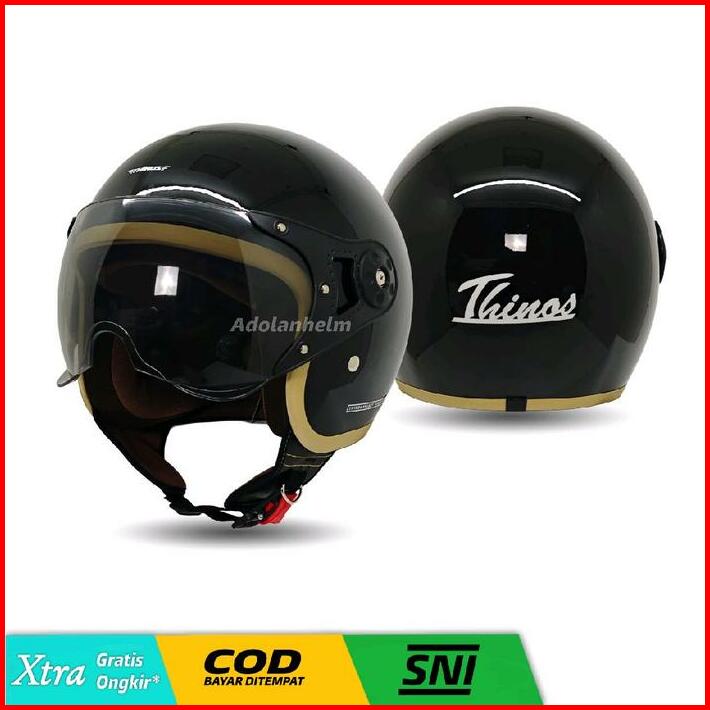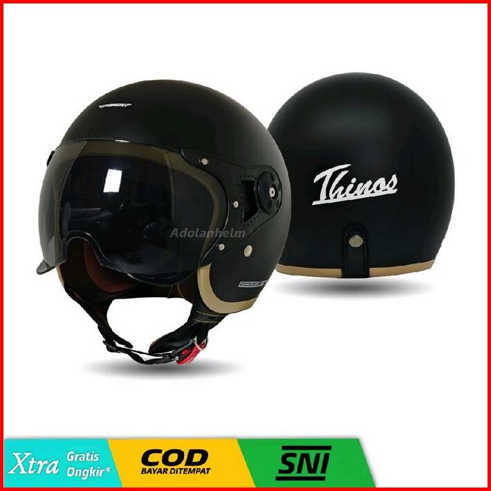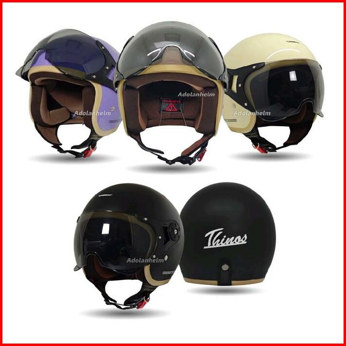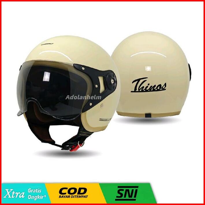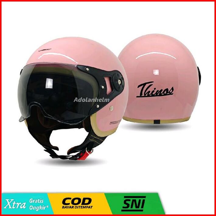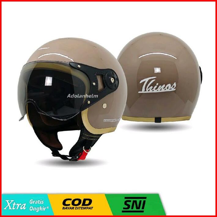 Helm Bogo Hijab Yrh Retro Kaca Pilot Helm Wanita Polos List Coklat Full Leher Sni Motorcycle