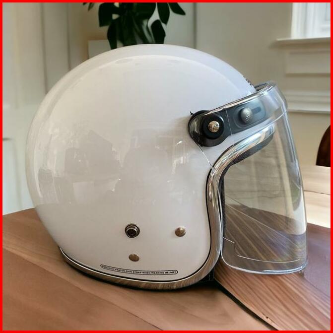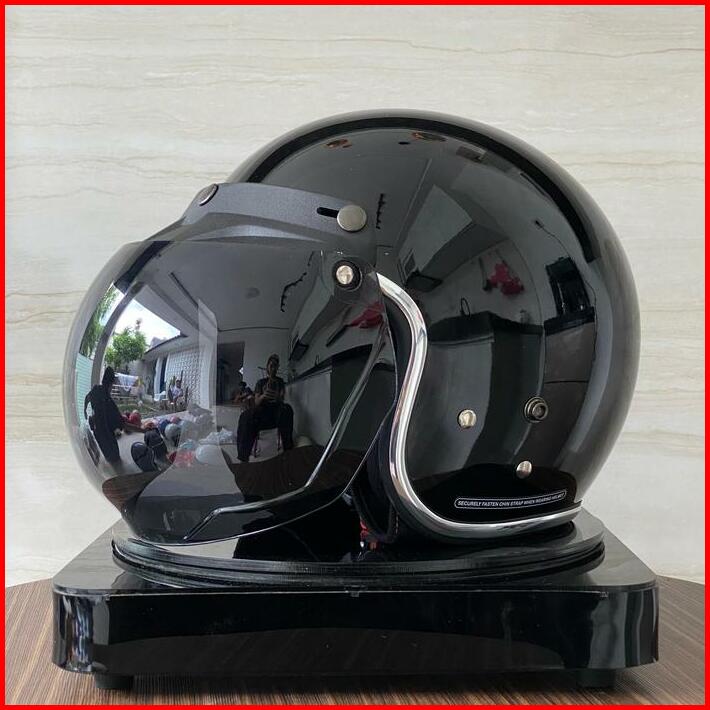 Helm Bogo Retro List Chrome Identik Carloss Free Kardus Kaca Flat Cembung