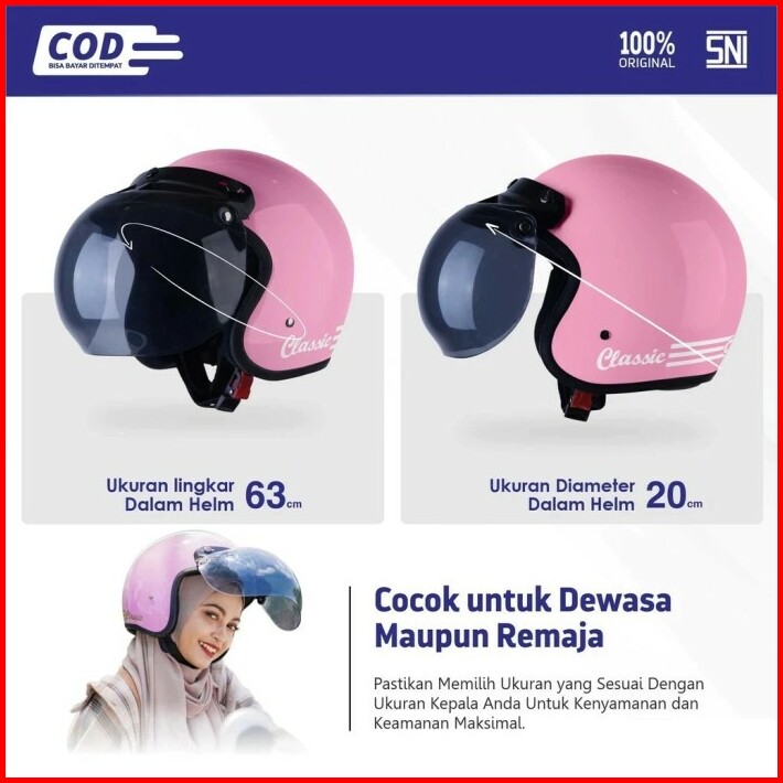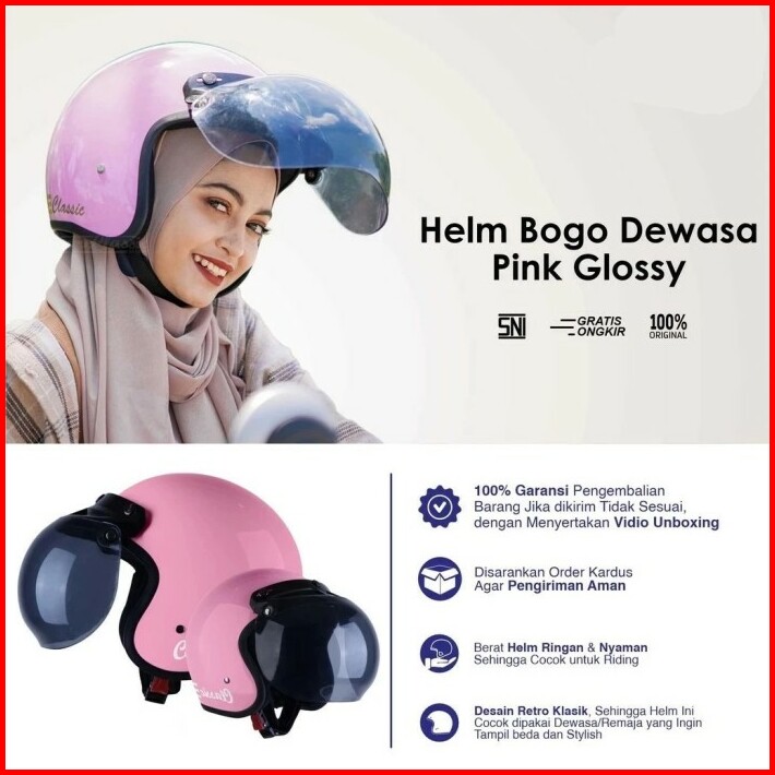 Helm Bogo Dewasa Classic Retro Pink Glossy Sni
