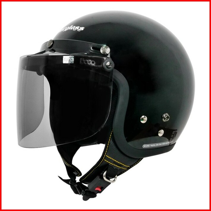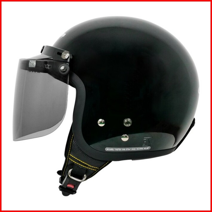 Cargloss Retro Helm Half Face Deep Black Visor Bogo Flat Smoke