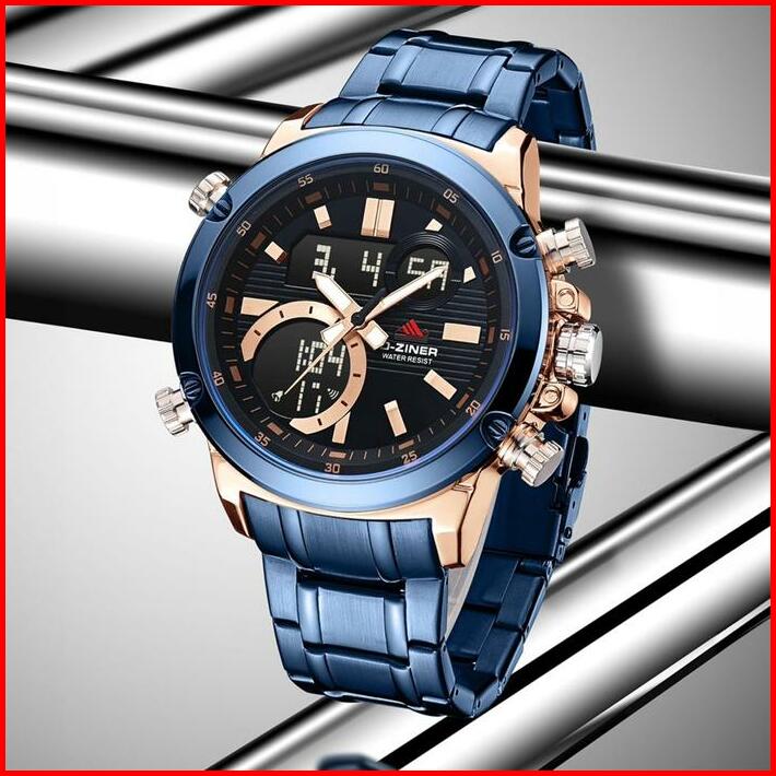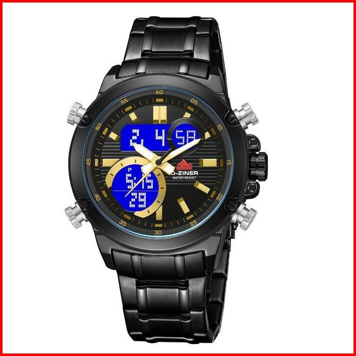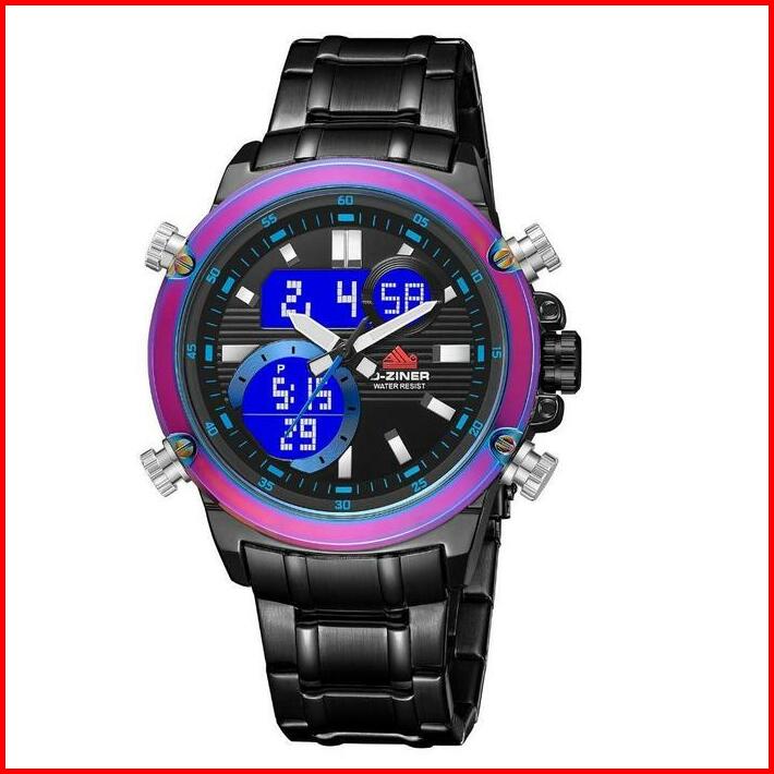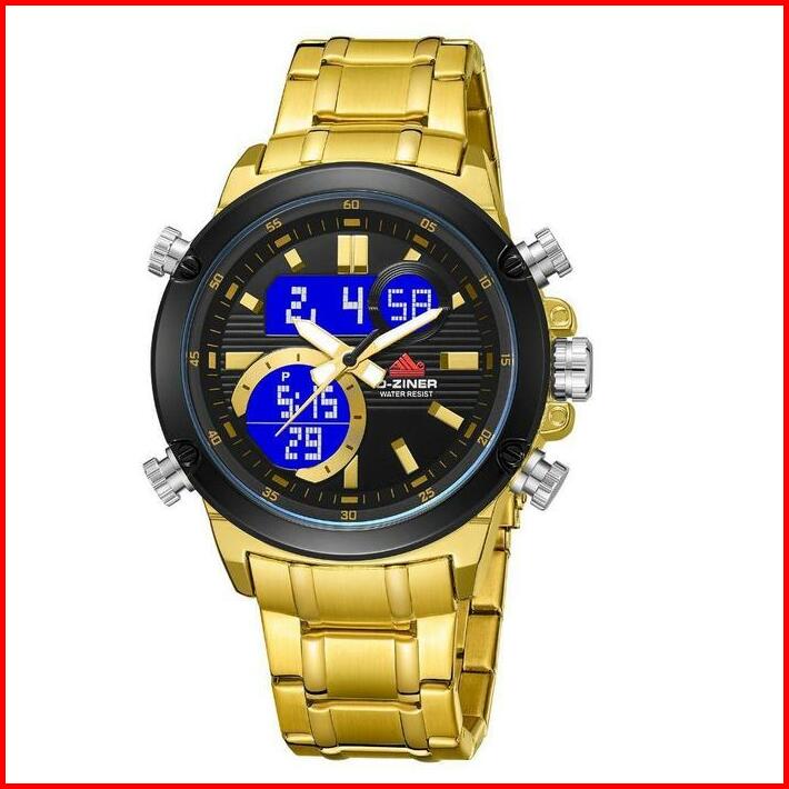 Diskon Jam Tangan Pria Dziner 8333 Rantai Stainless Steel Double Time Water Resistant 3 Atm Watches