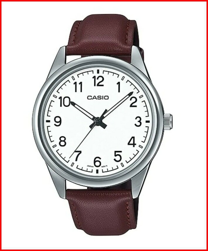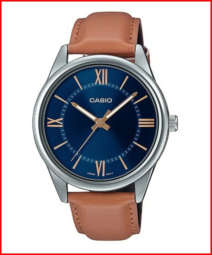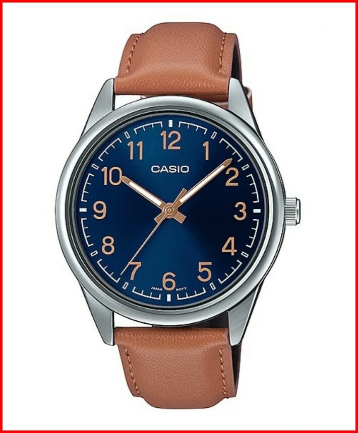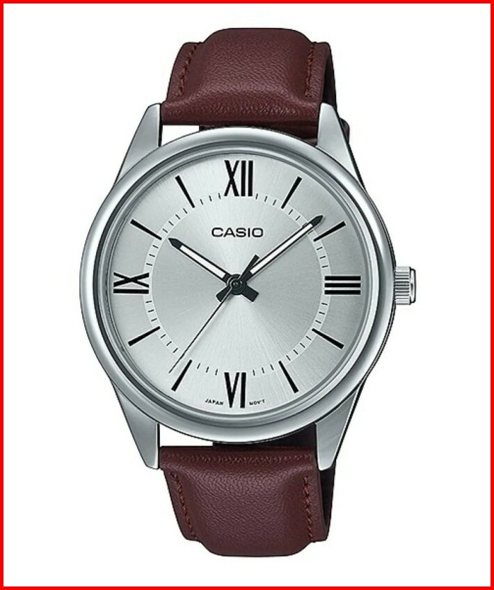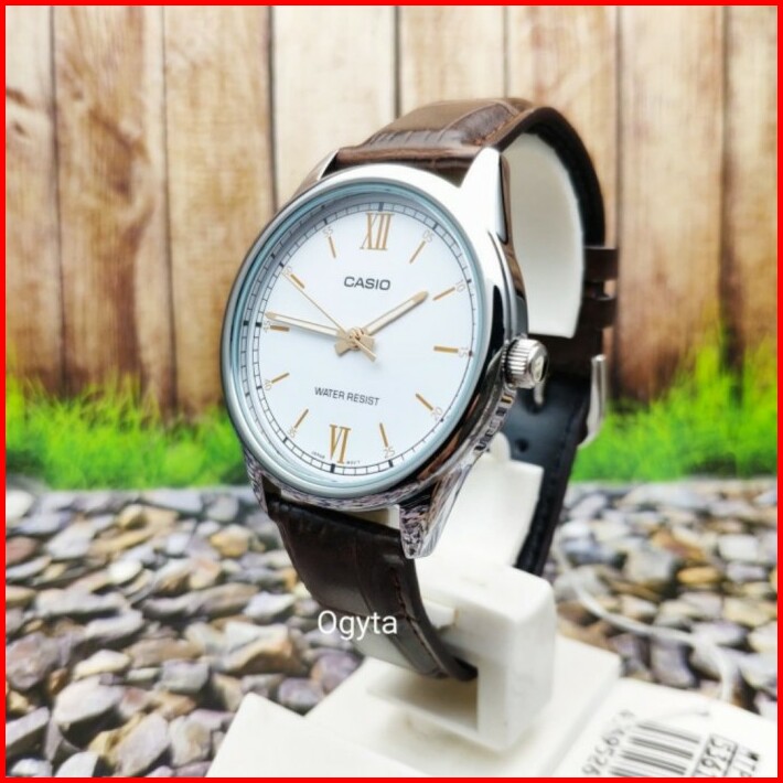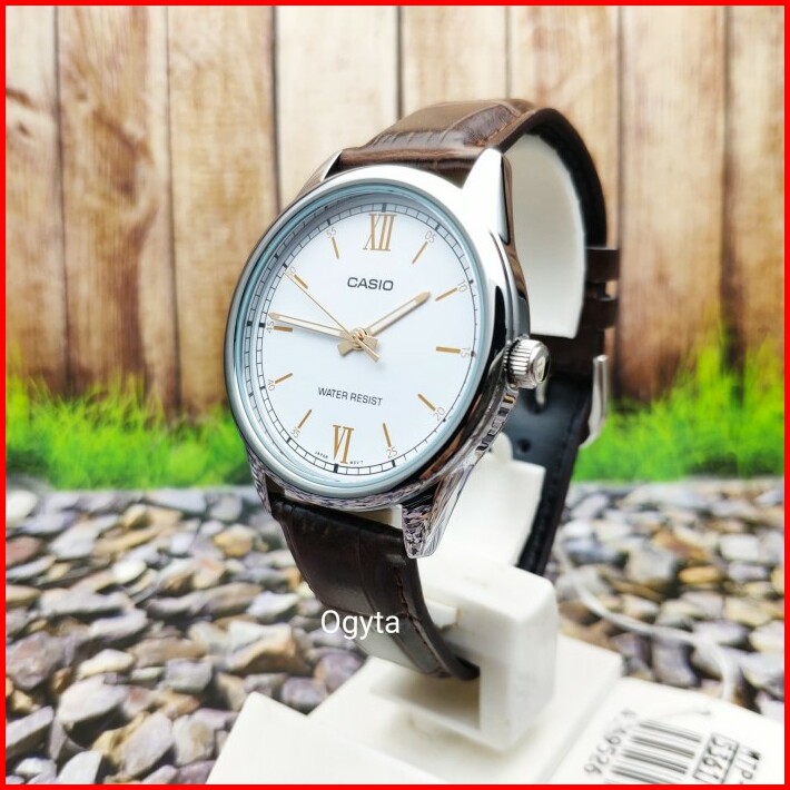 Casio Analog Jam Tangan Pria Kulit Cokelat Mtp-v005l-7b3 Original