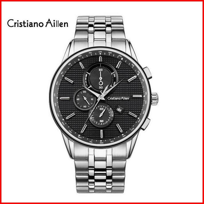 Cristiano Aillen Jam Tangan Pria 0849 Rantai Stainless Steel Water Resistant 3 Atm Watches