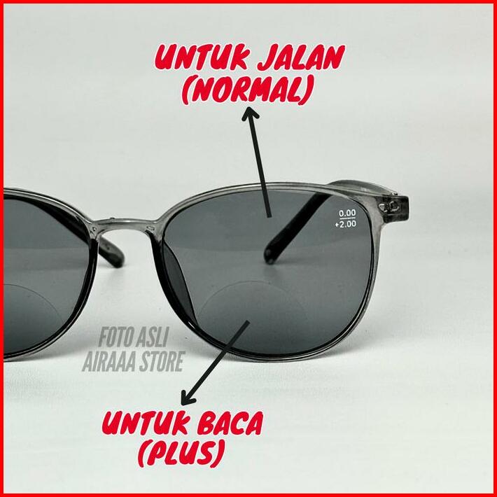 Kacamata Double Fokus Baca Dan Jalan Lensa Warna Abu Muda Anti Radiasi Cahaya Biru Uniseks
