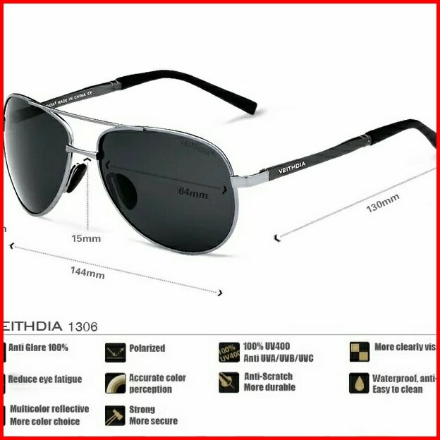 Kacamata Hitam Pria Antisilau Polarized Uv400 Original Veithdia 1306