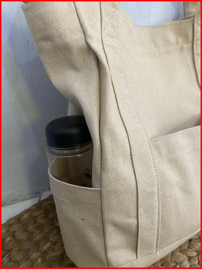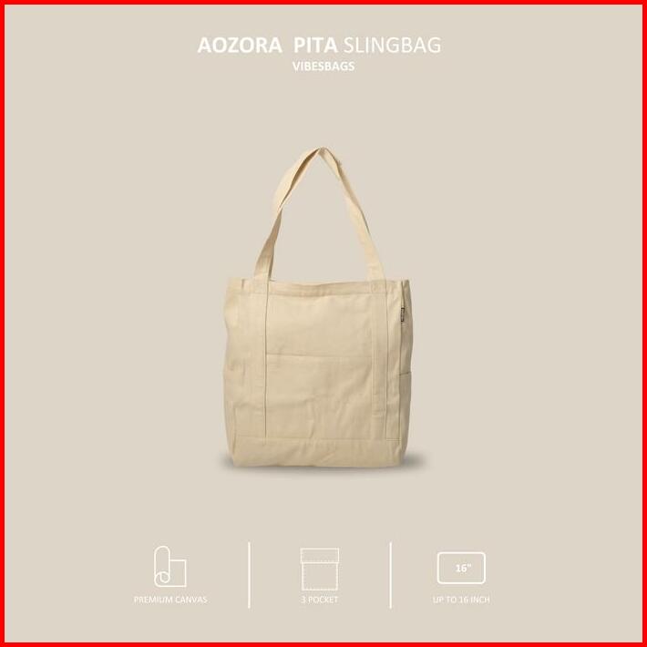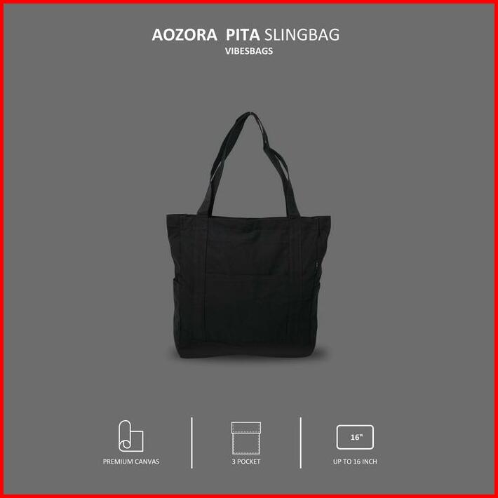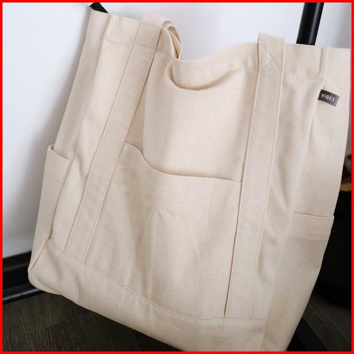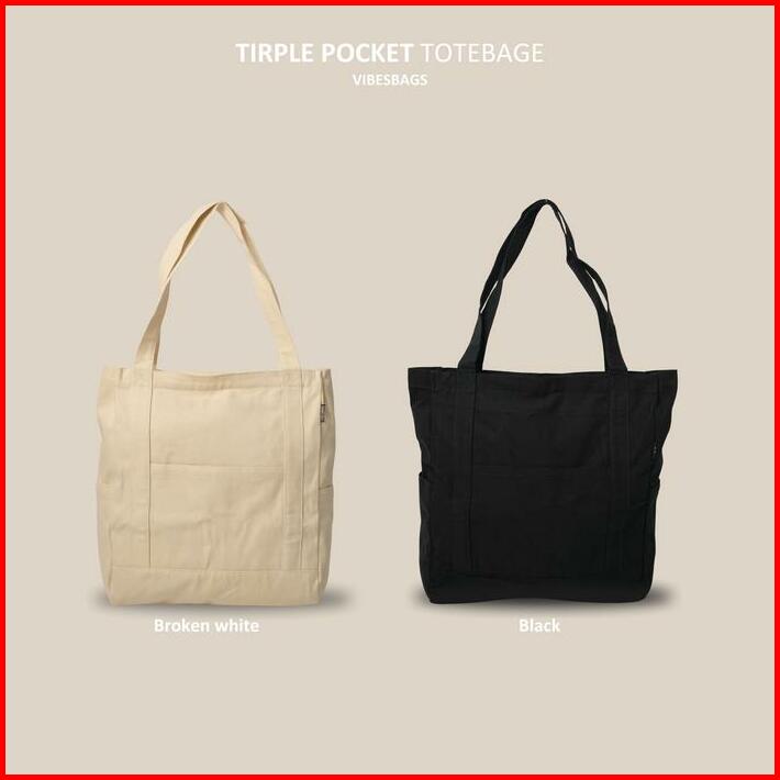 Totebag Triple Pocket Polos Kanvas Tote Wanita Hitam-totebag Wanita Tas Bahu Viral Best Seller Cewek