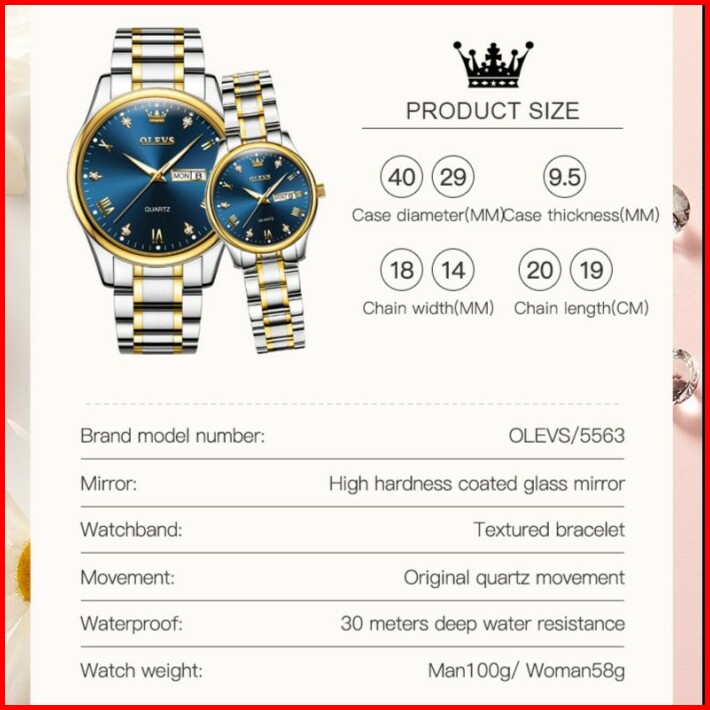Jam Tangan Couple Original Olevs Anti Air Stainless Steel 5563
